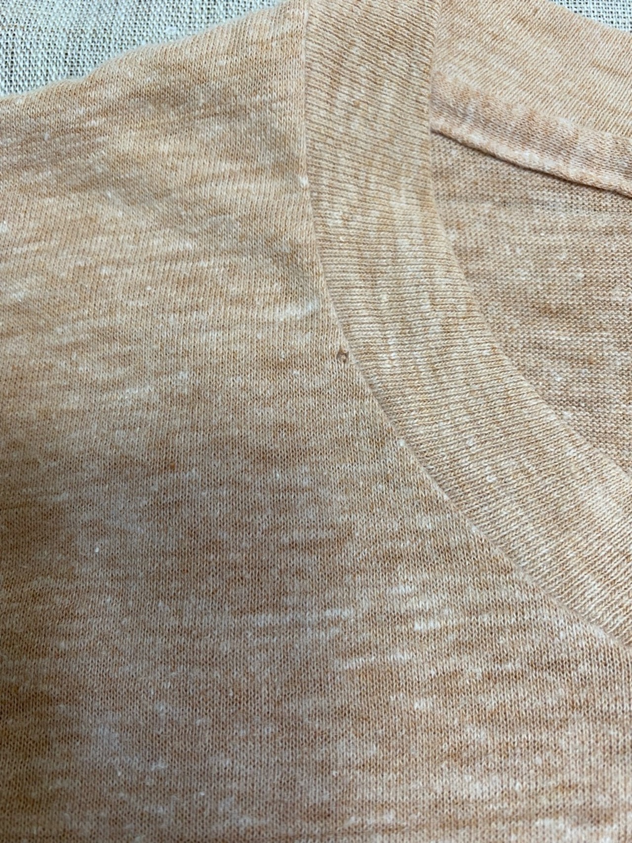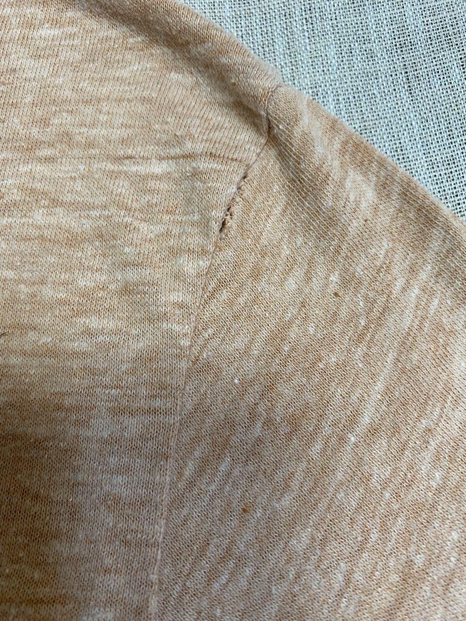 写真にもあるように首元に小さな穴、袖の付け根に小さなほつれがあります。