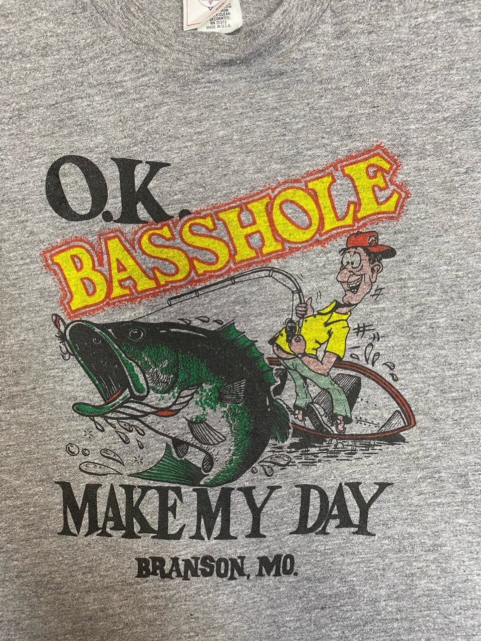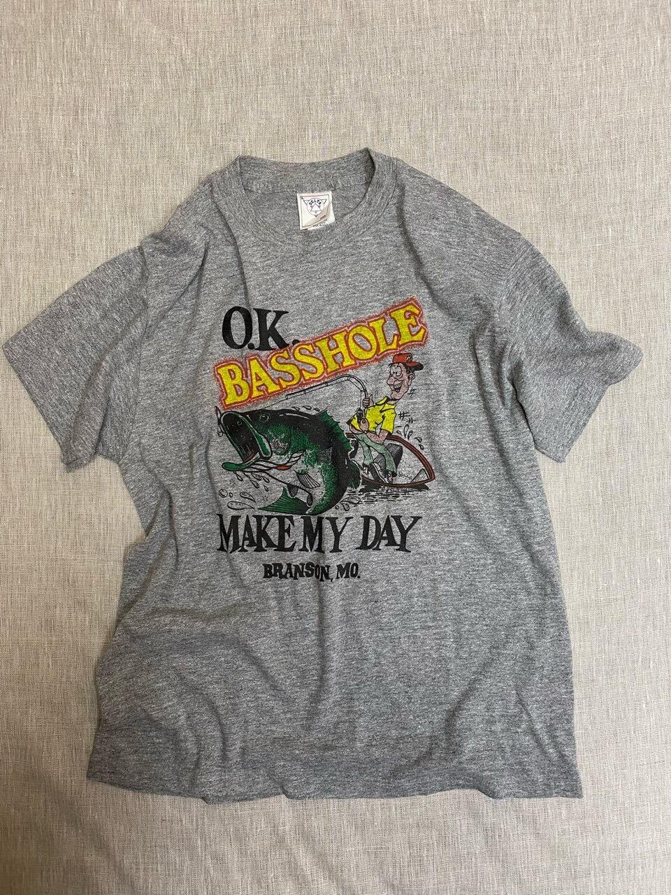 恐らく80年代のデルタアパレルにO.K.BASSHOLEのプリント入りTシャツです。