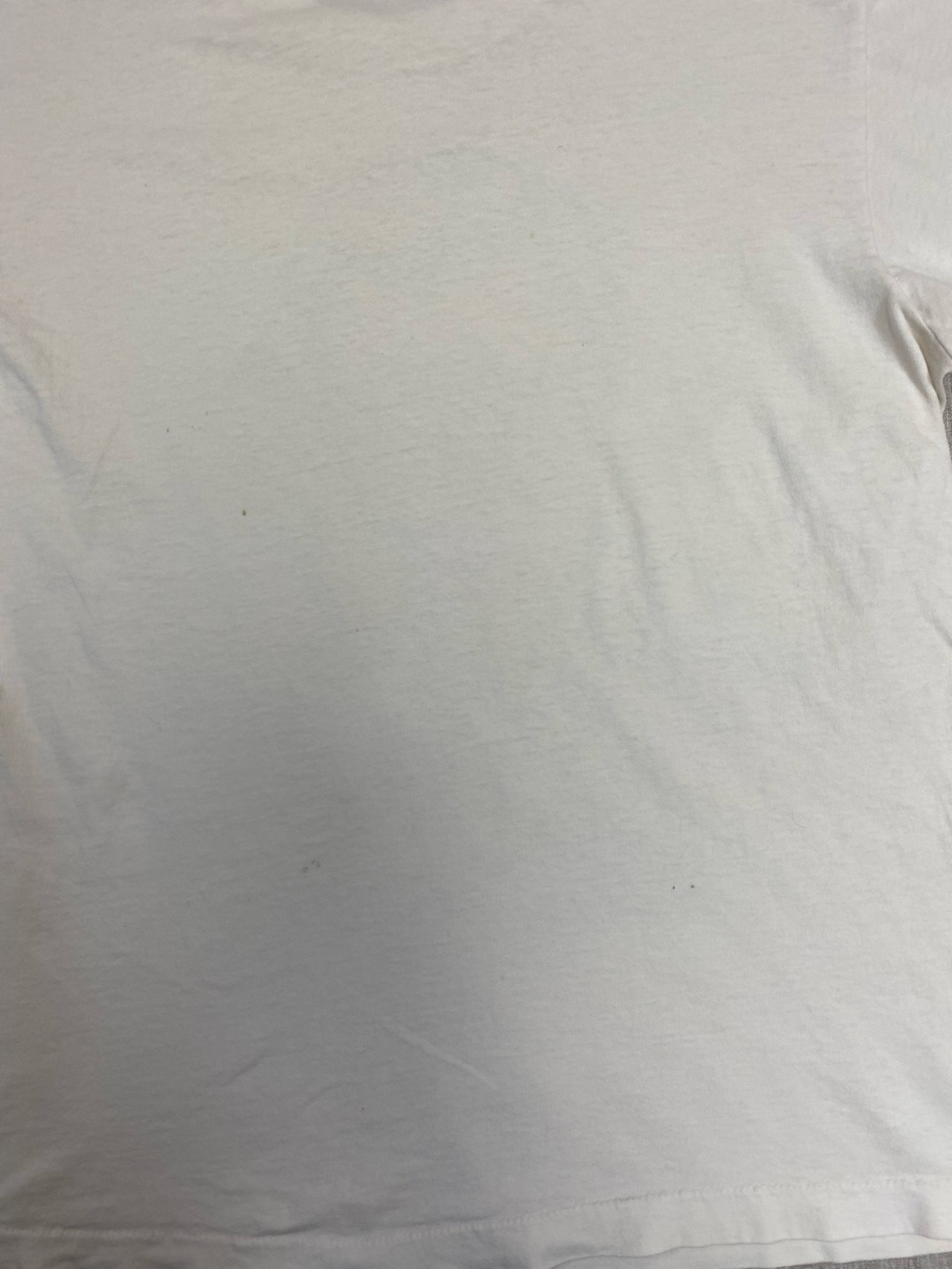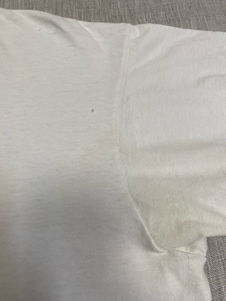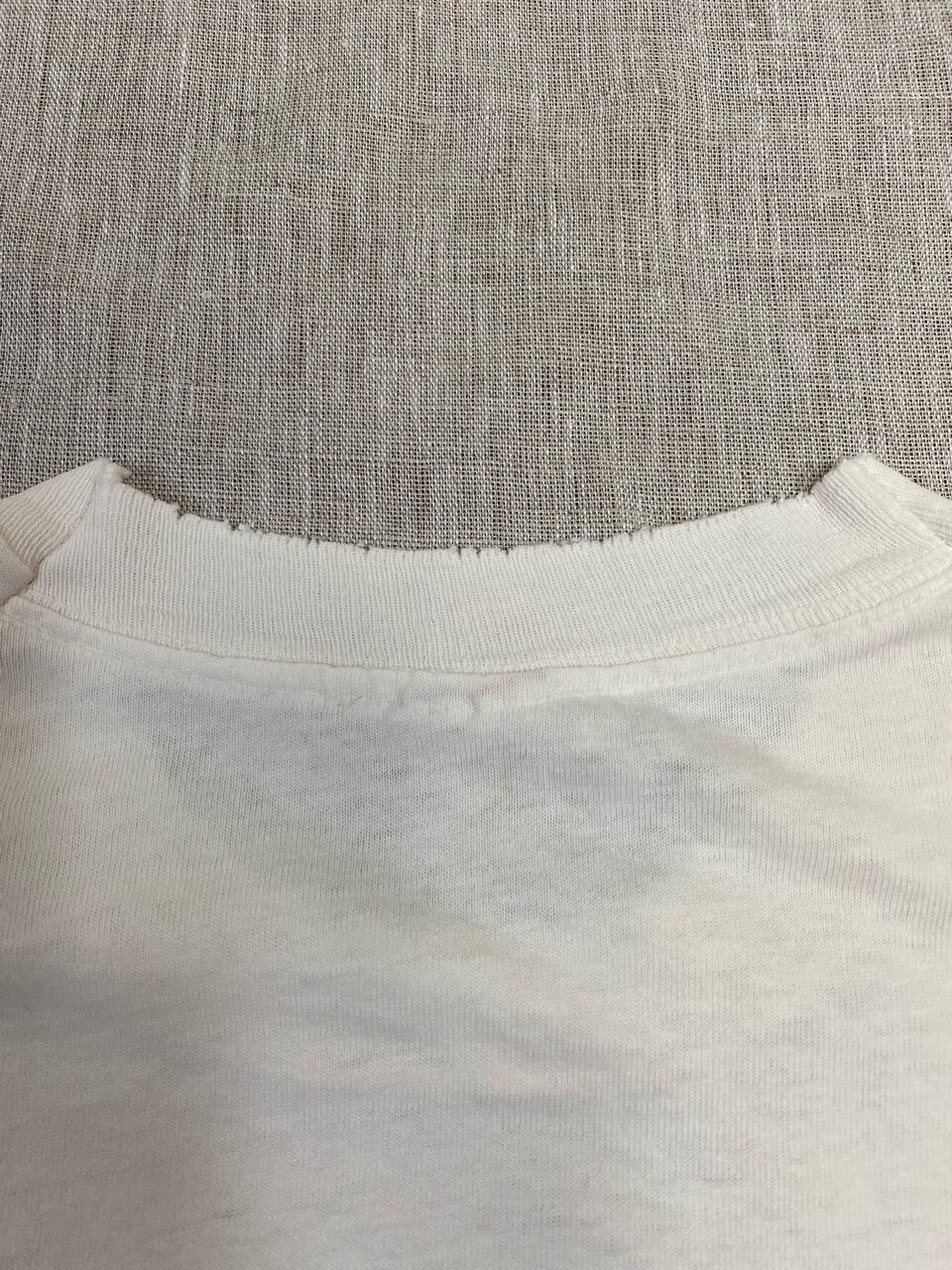 全体的にかなり経年劣化がひどく色褪せやシミなども多くあります。特に首まわりの汚れや破れ、両脇の大きなシミなどは目立ちます。よくご覧いただきお考えください。