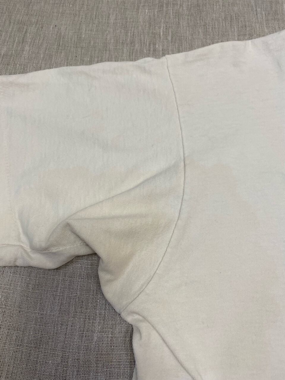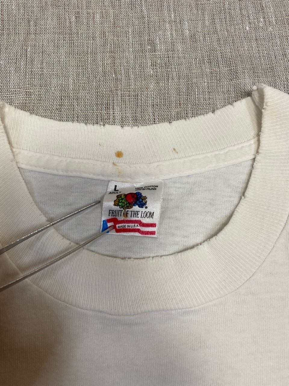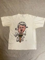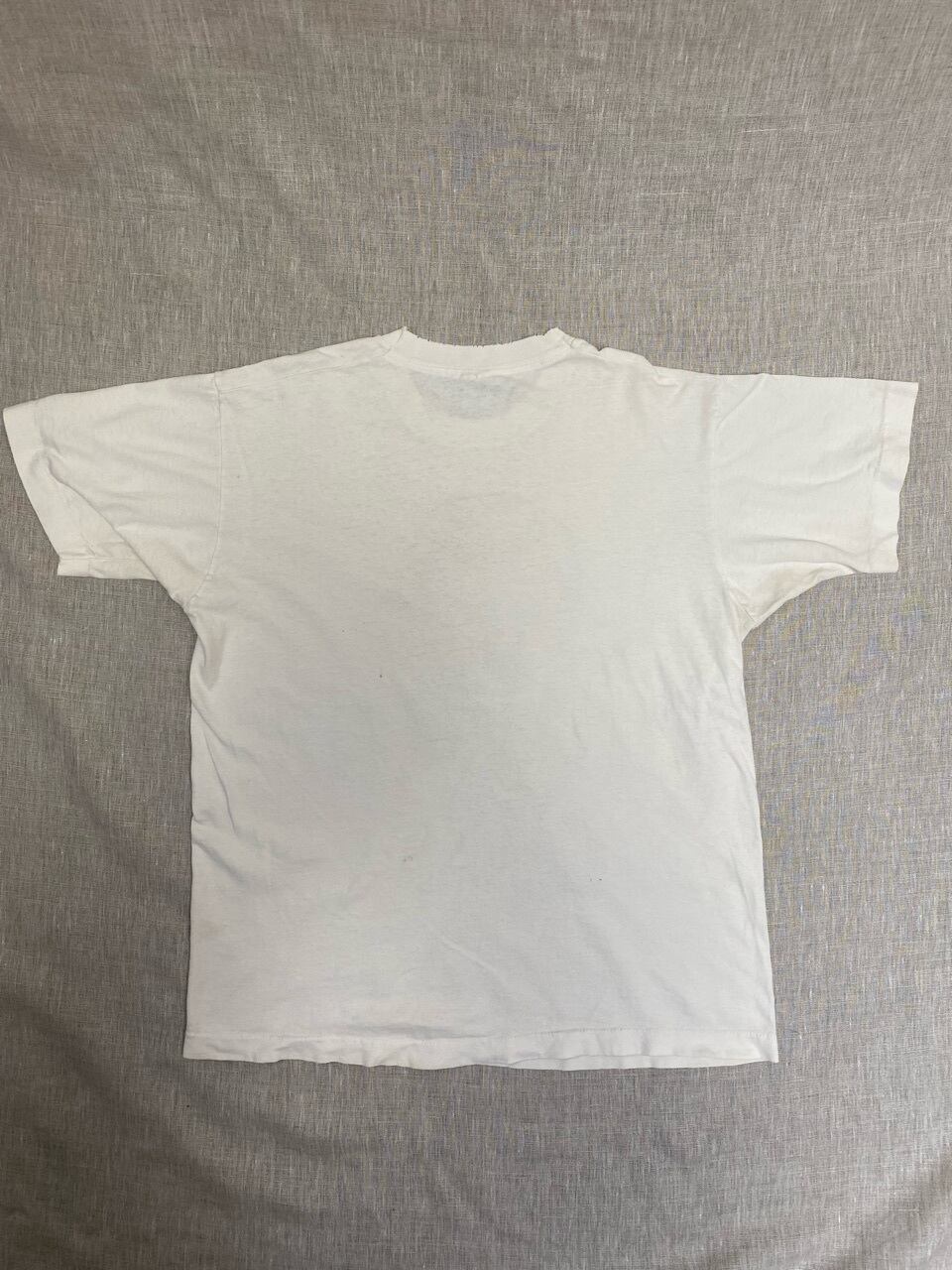 90年代のFRUIT OF THE LOOMを使いアメリカ独特な毒があり少し笑えるデザインのプリントTシャツです。