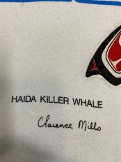ハイダ族の代表的なシャチ柄でアーティストClarence Millsの作品です。恐らくスーベニア商品です。