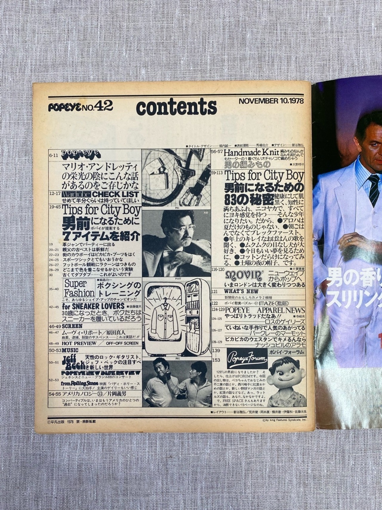 1978年のポパイです。当時のCITY BOYは男前になるアイテムや着方がたくさん載っています。