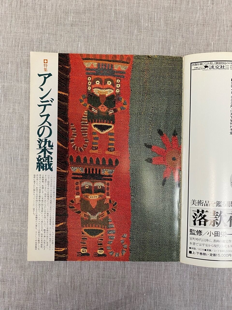 1982年の染織の美です。特集のアンデスの染織はお好きな人には非常にオススメです。その当時のアンデスの置き物や壺などもたくさん載っています。