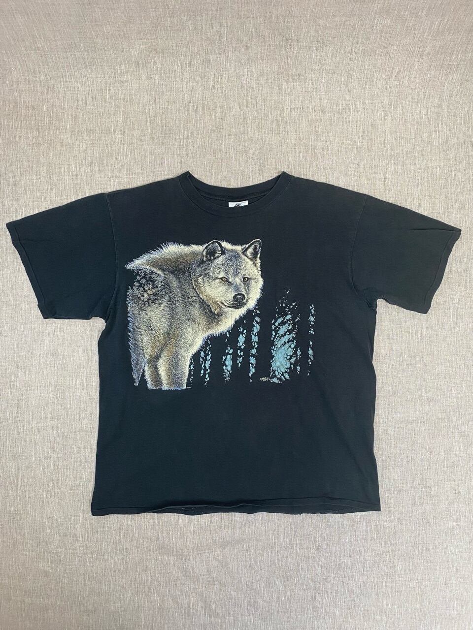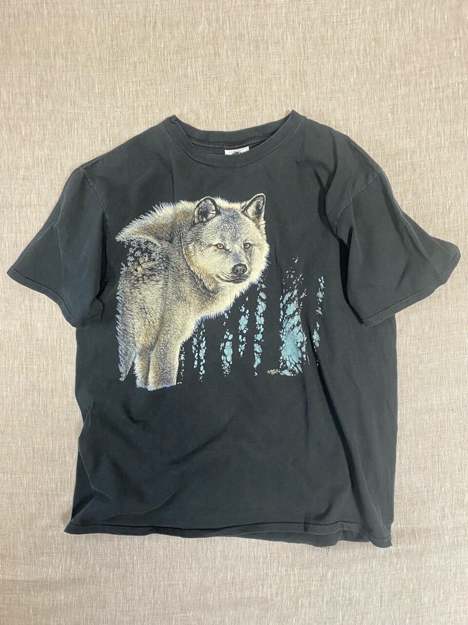 狼も大きくてインパクトのある大きさのプリントで90年代らしい幅の広めのTシャツです。