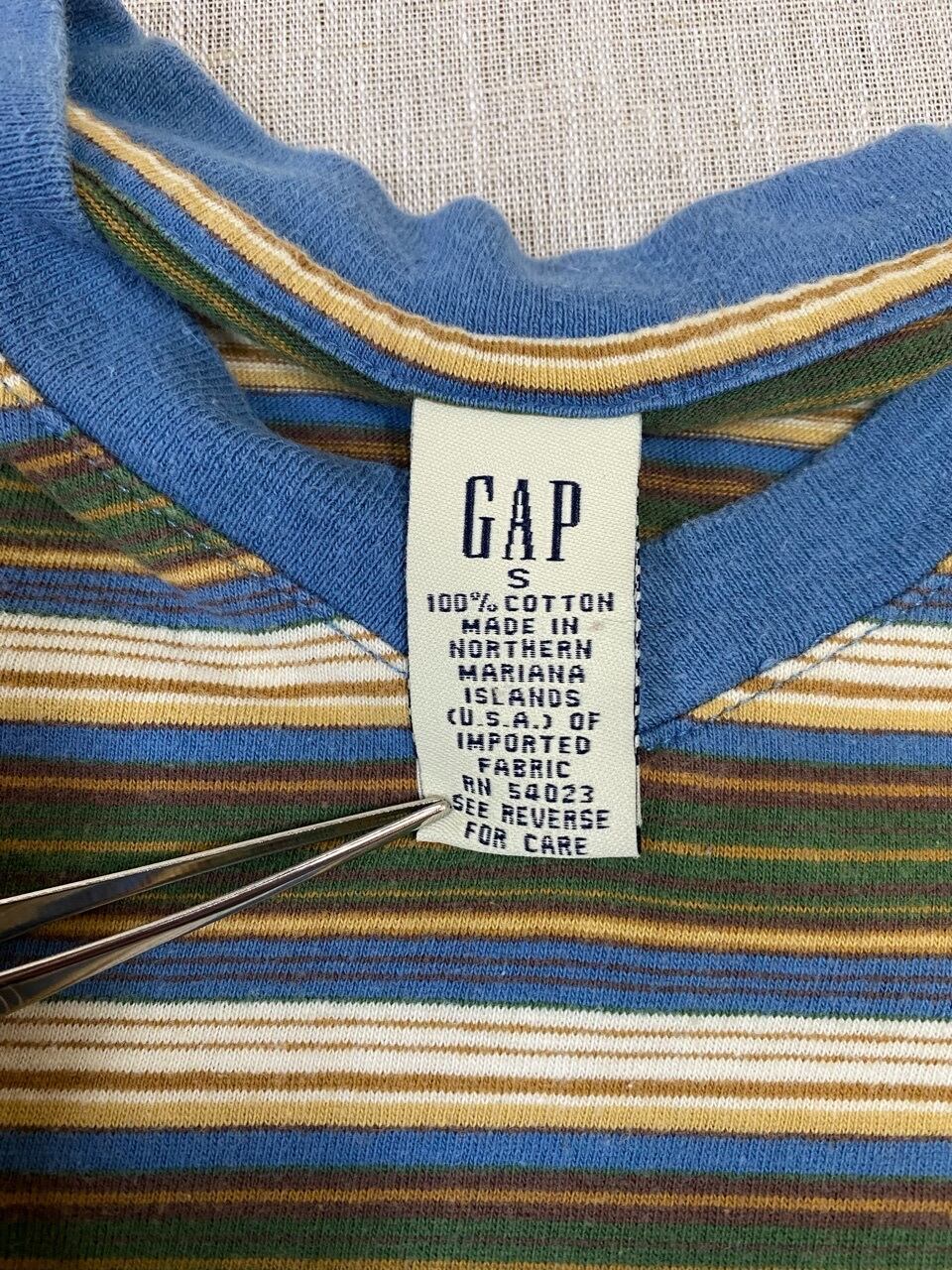 90年代のGAPマルチボーダーVネックTシャツです。