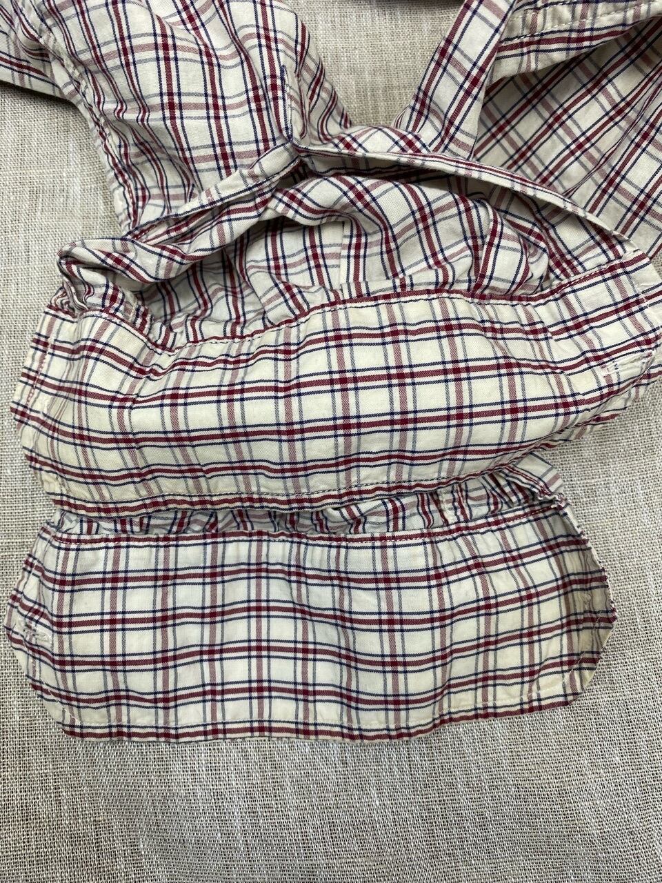 全体的に使用感はあります。襟裏とカフス裏に汚れや黄ばみがあります。写真をご確認ください。気になる方はご遠慮ください。