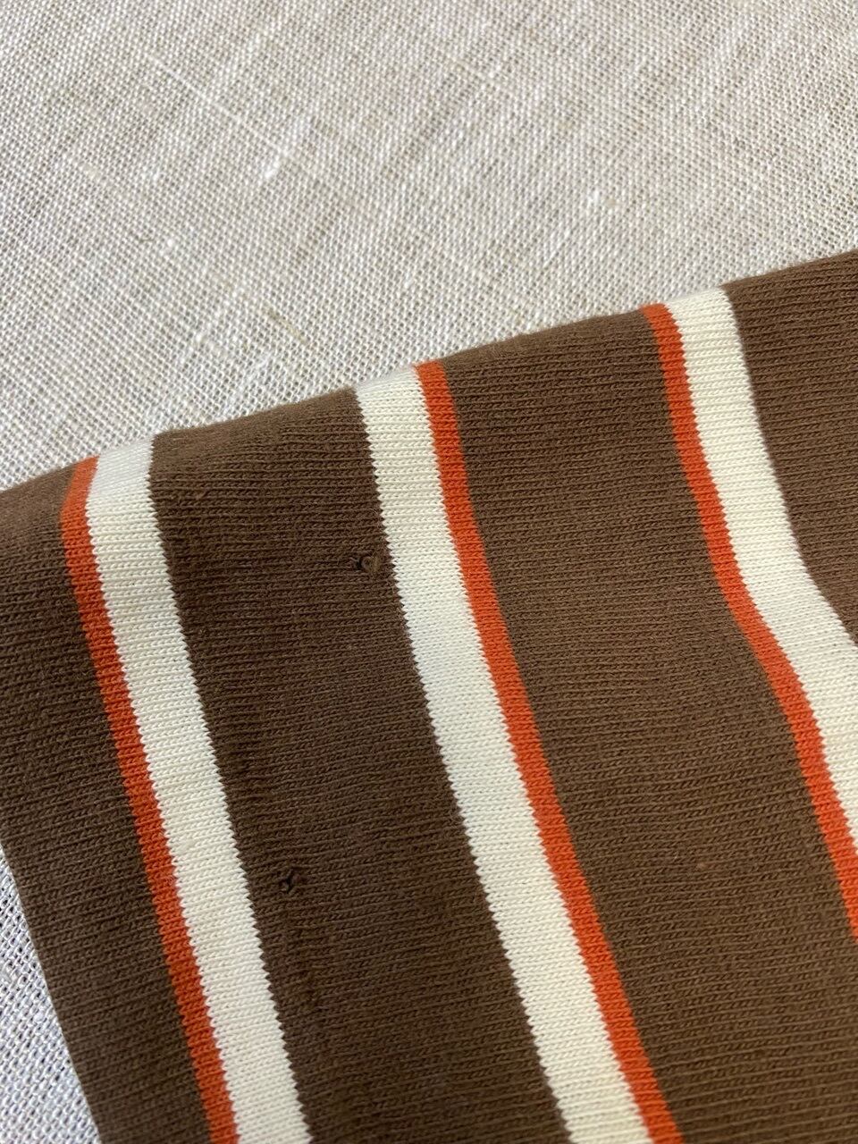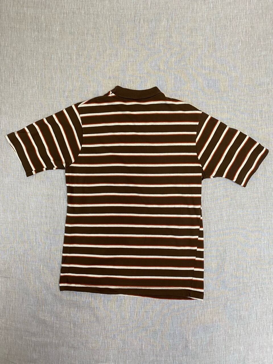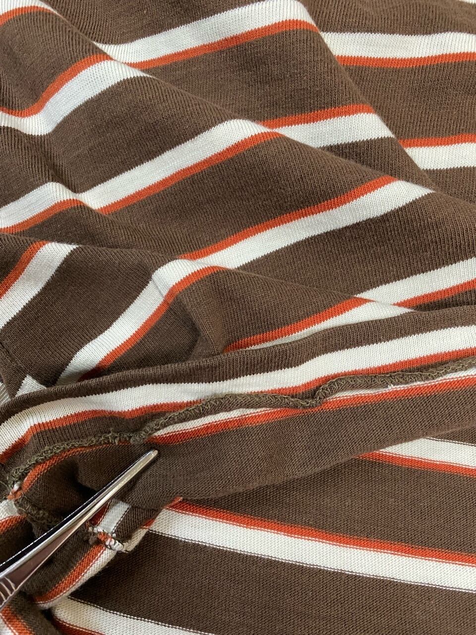 ネームなどがない為、ブランドや年代は不明ですが色合いや雰囲気がかわいいマルチボーダーTシャツです。袖が長めなので写真の様にロールアップをしていただくといいと思います。首元が細めのでサイズもタイトなので女性の方へオススメします。