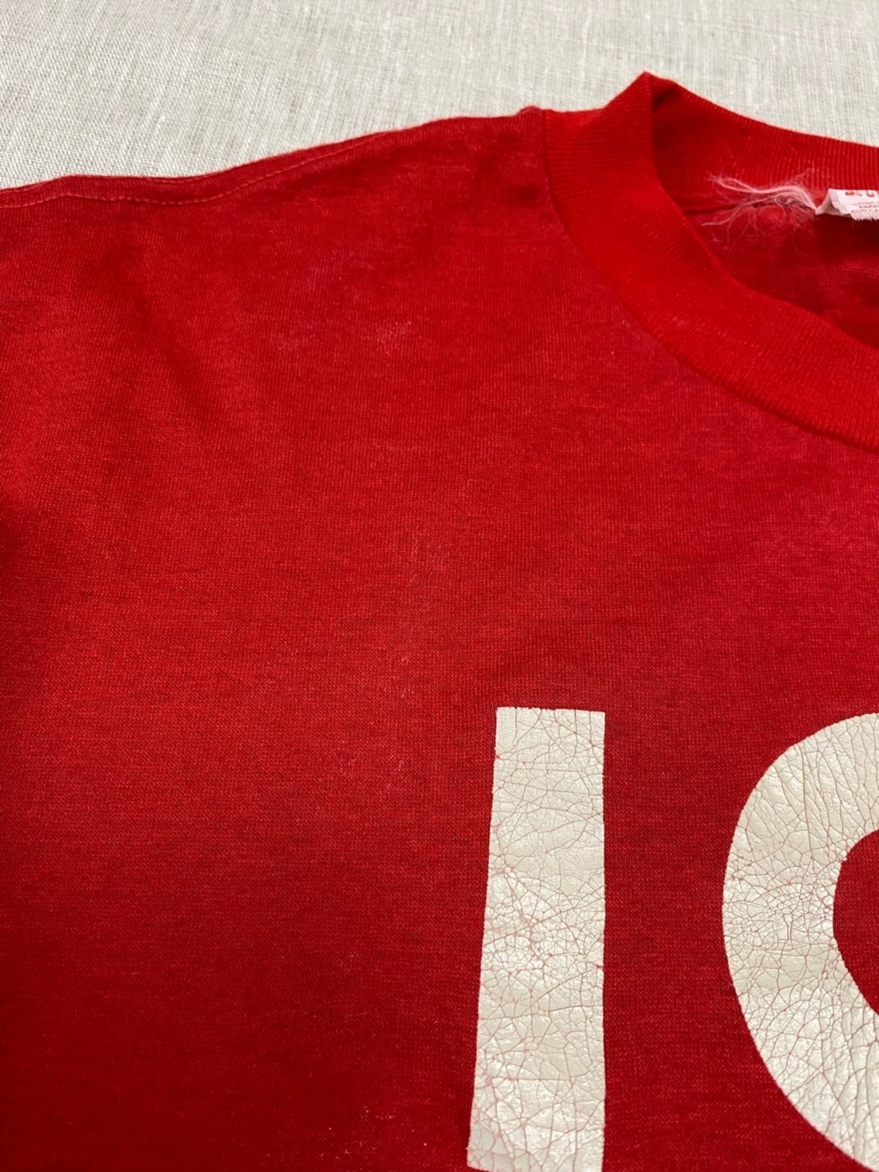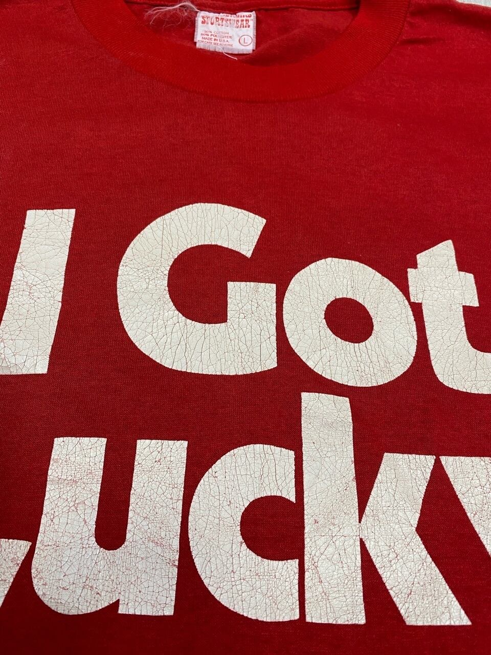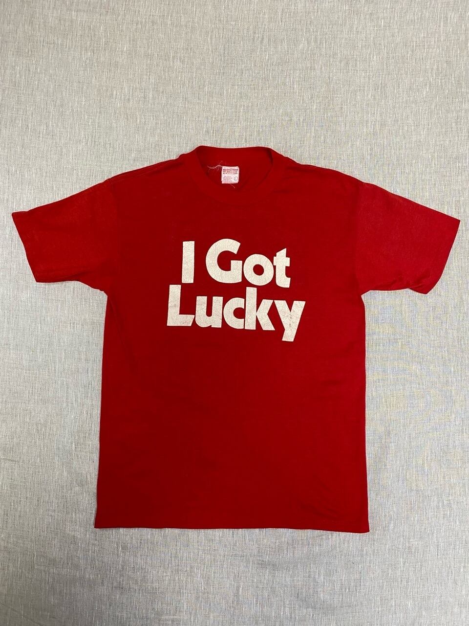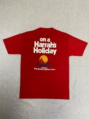 80年代のサンダーバードスポーツウェアのボディを使用したプリントTシャツです。恐らくニュージャージー州アトランティックにあるハラーズというホテルチェーンのイベントかキャンペーンTシャツだと思います。プリントの感じデザインもよく割れてるプリントもいい感じです。
