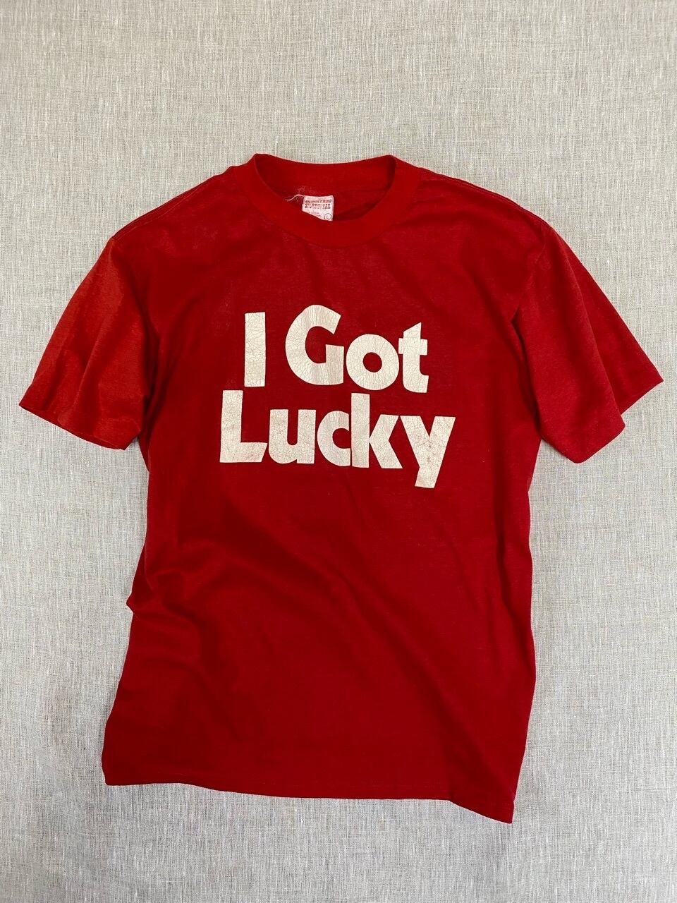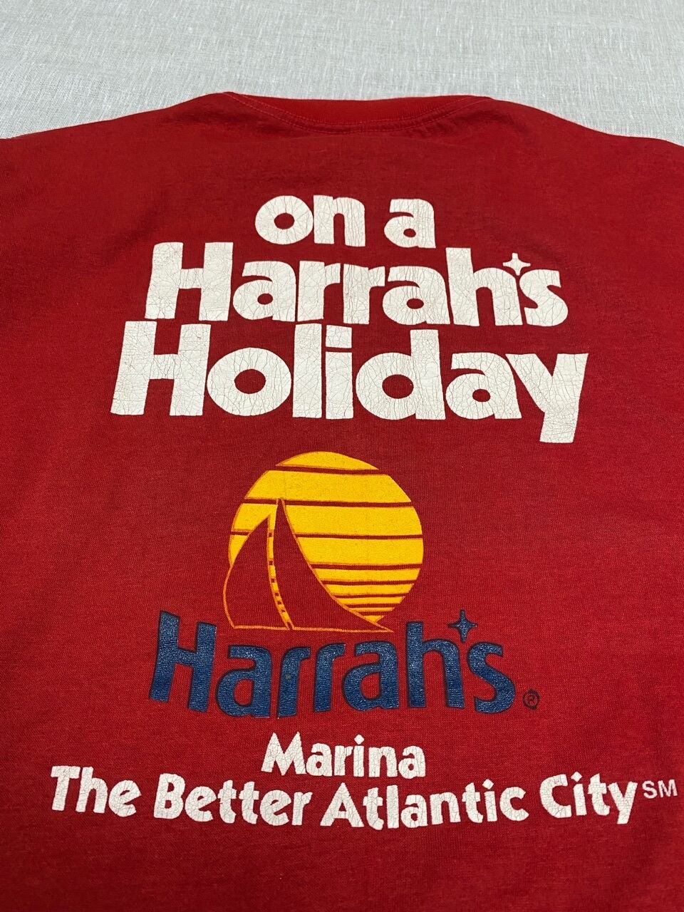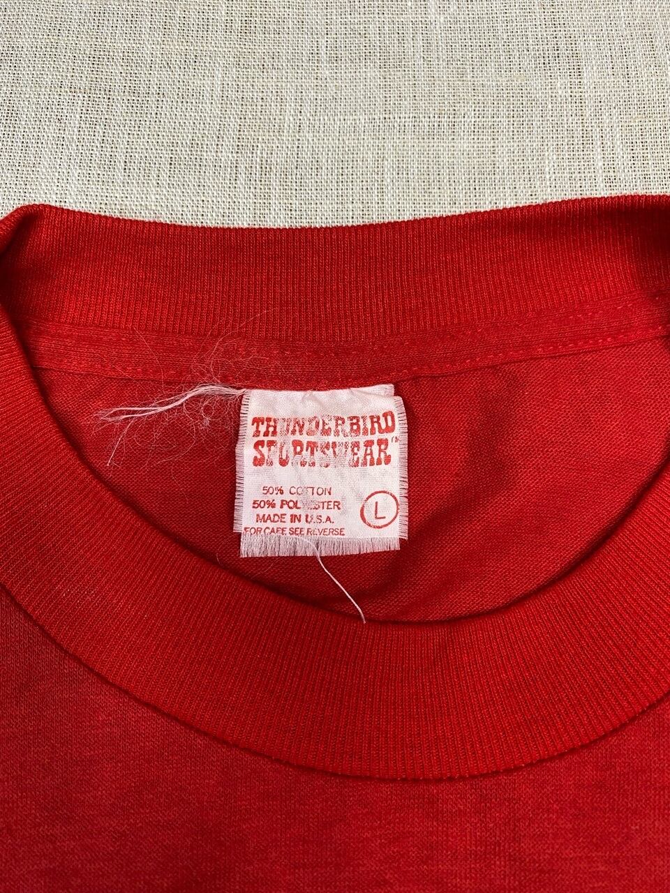 80年代のサンダーバードスポーツウェアのボディを使用したプリントTシャツです。恐らくニュージャージー州アトランティックにあるハラーズというホテルチェーンのイベントかキャンペーンTシャツだと思います。プリントの感じデザインもよく割れてるプリントもいい感じです。