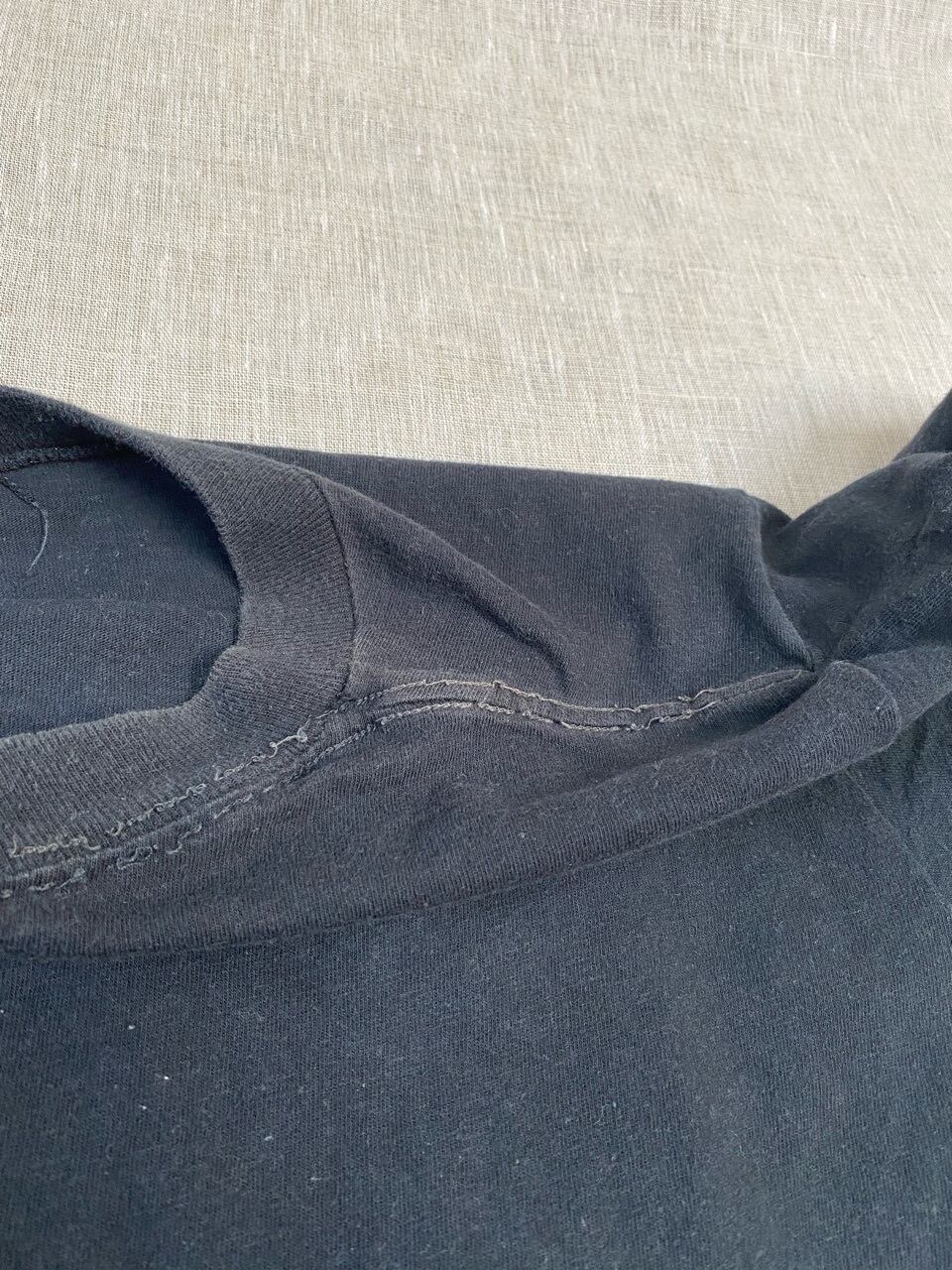 黒なので特にですが、全体的に古着独特な色が褪せた感じがあります。首元リブの部分がホツレていますが着ていただけると思います。気になる方はご遠慮ください。