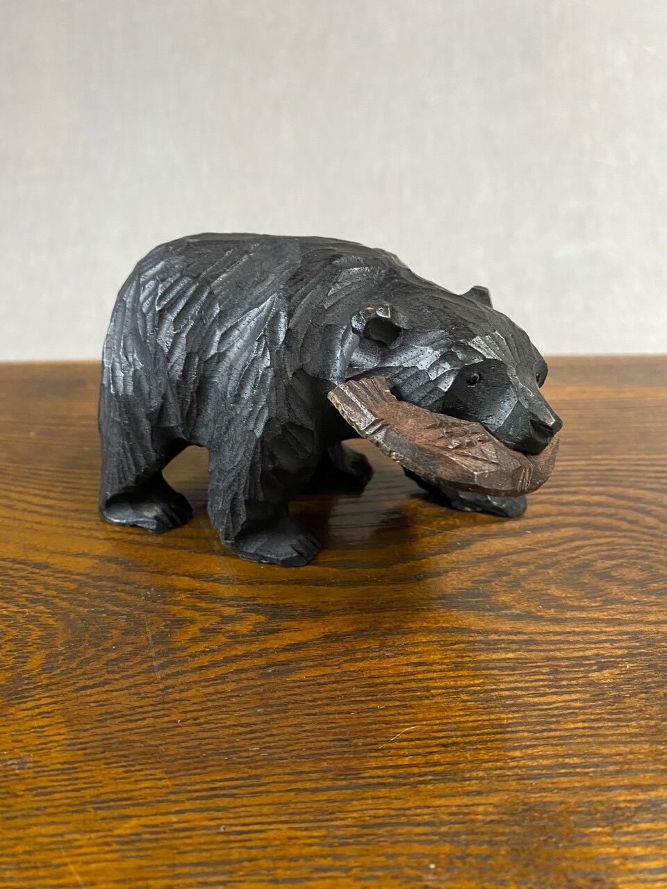 木彫熊(小さく鮭付き)木製