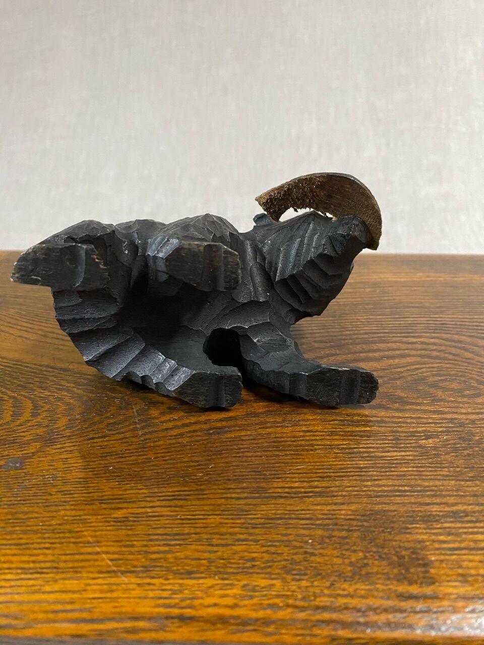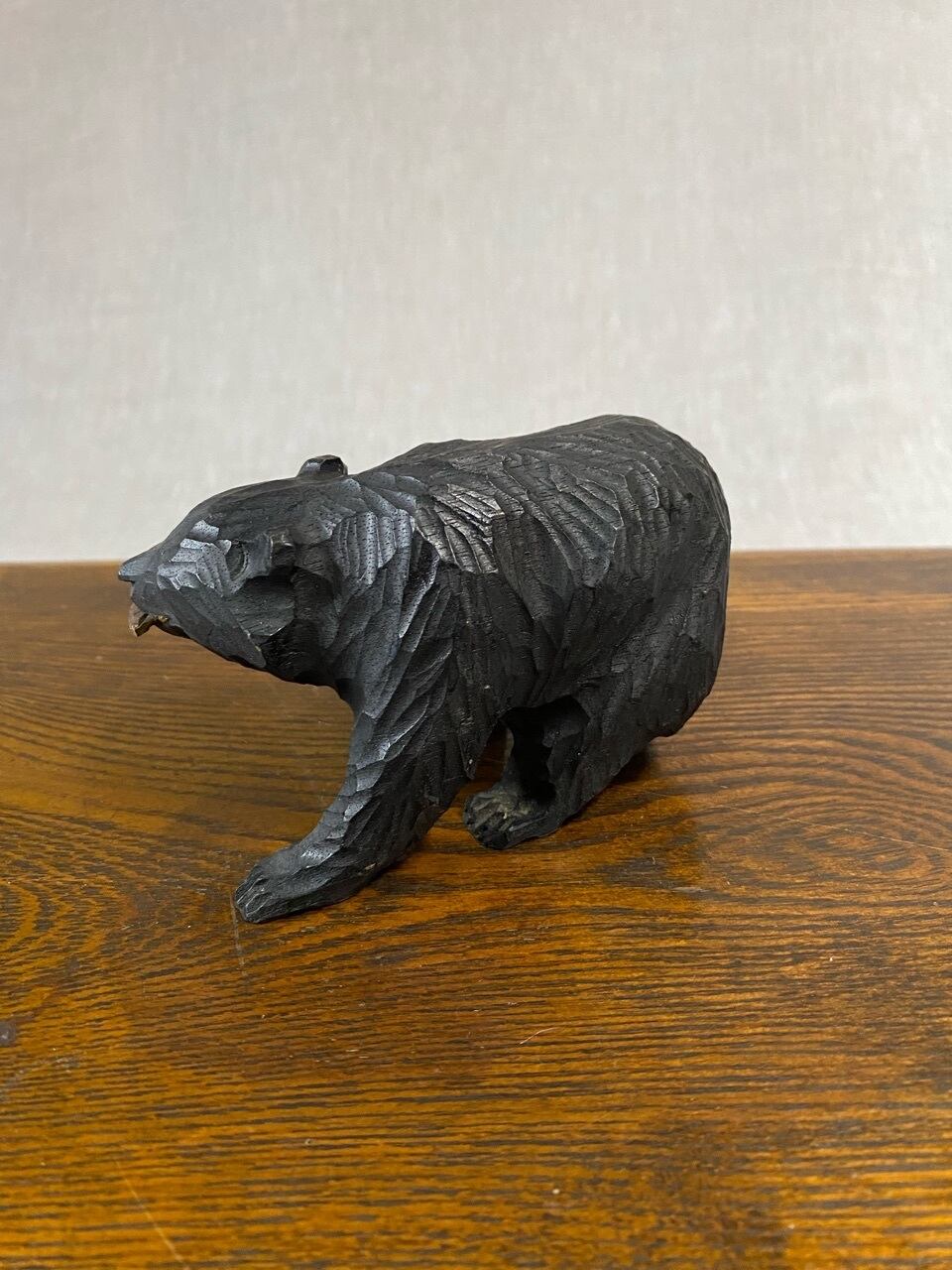 恐らく昭和の北海道お土産として販売させてた木製の熊の置き物です。小さめの熊です。とてもかわいいフォルムです。