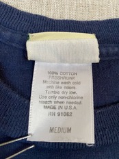 全体的に古着独特な色褪せた感じです。写真にもありますが少しシミのようなものもありますが特別目立つ汚れや破れなどはそれ以外ないと思います。プリントはいい感じに割れています。ご確認ください。