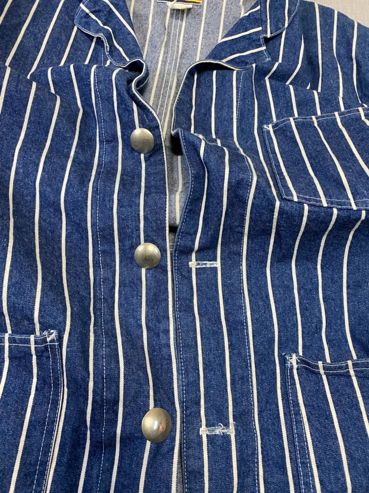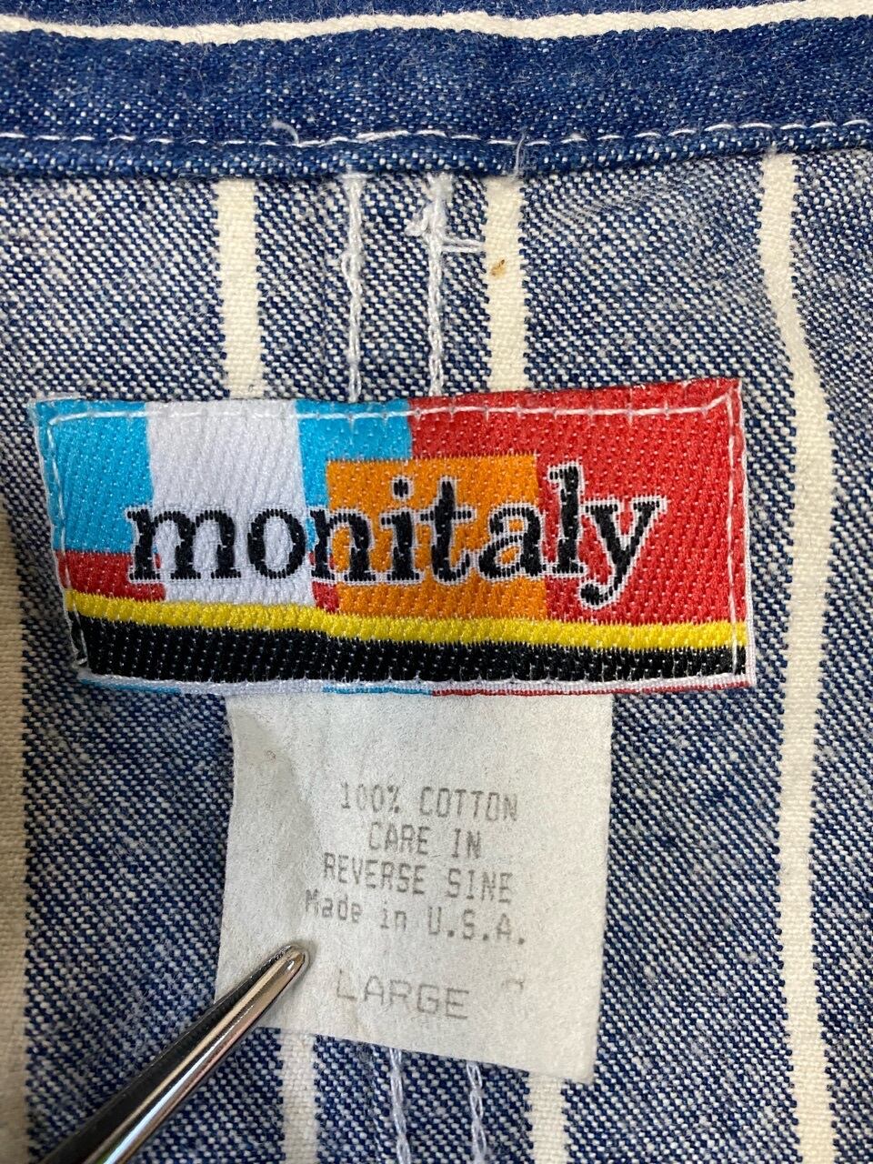2000年代と思われるアメリカのブランドモニタリーのデニムジャケットです。シルバー金具のボタンやプリーツやウエストポイントのデザインはウエスタンワークの要素もあり独特でストライプのデニム素材もアメリカ製ならではの味があります。ありそうでない雰囲気のあるジャケットです。