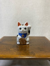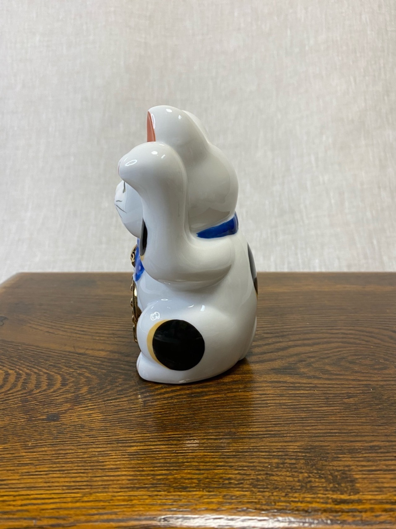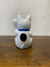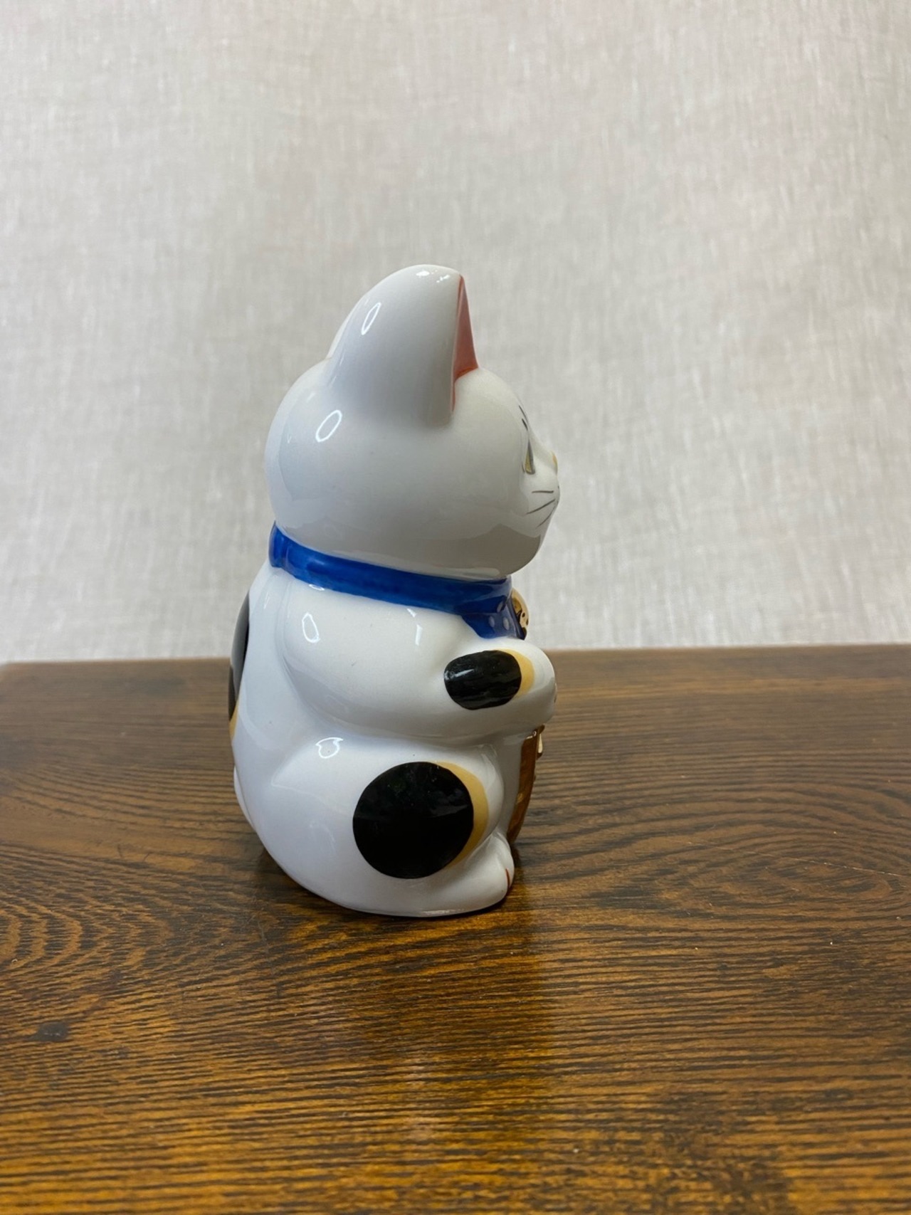 こちらは左足を上げているので人を招くといわれています。小型の昭和のモノと聞いています。磁器でとても綺麗な状態だと思います。
