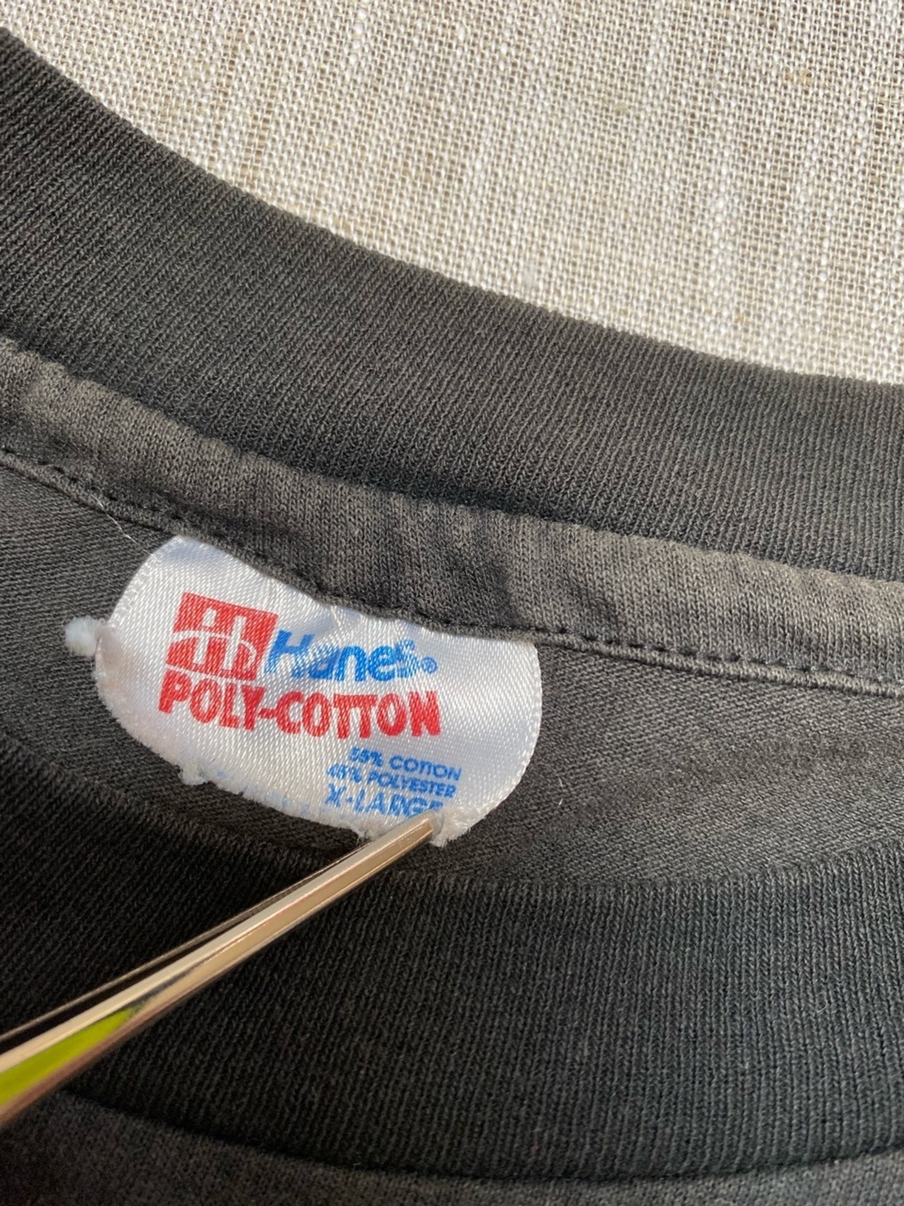 全体的に古着独特な褪せた感じで、写真にもありますが小さな穴が何箇所かあります。プリントなどは綺麗です。ご確認ください。