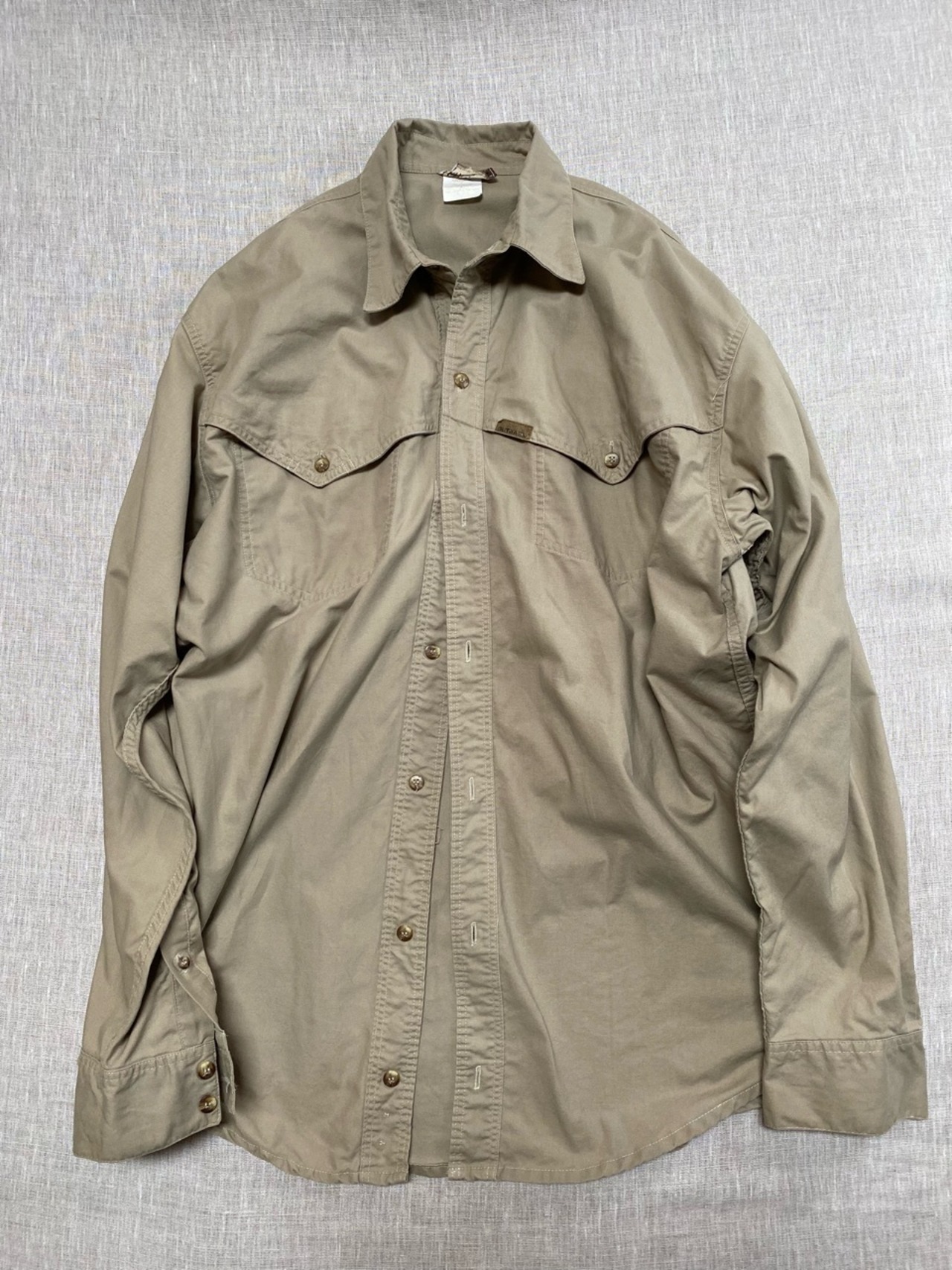 ペンシルベニア州オックスフォードにあるアウトドアブランドOUTBACKのハンティングシャツ。サイズも大きめでポケットの付け方や後ろのデザインなどは独特です。
