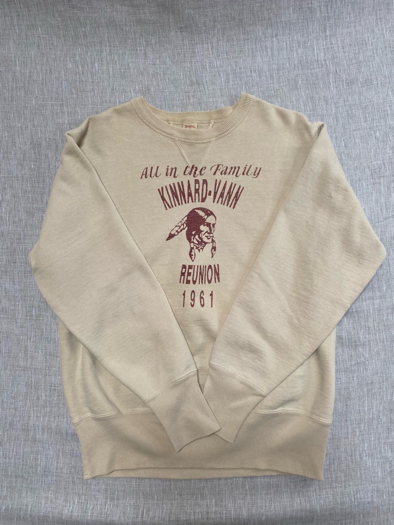 90年代のUESのプリントスウェットです。本格的な両Vガゼットのスウェットで当時人気だったヴィンテージ加工の商品です。サイズは少しタイトな為、女性の方にオススメです。