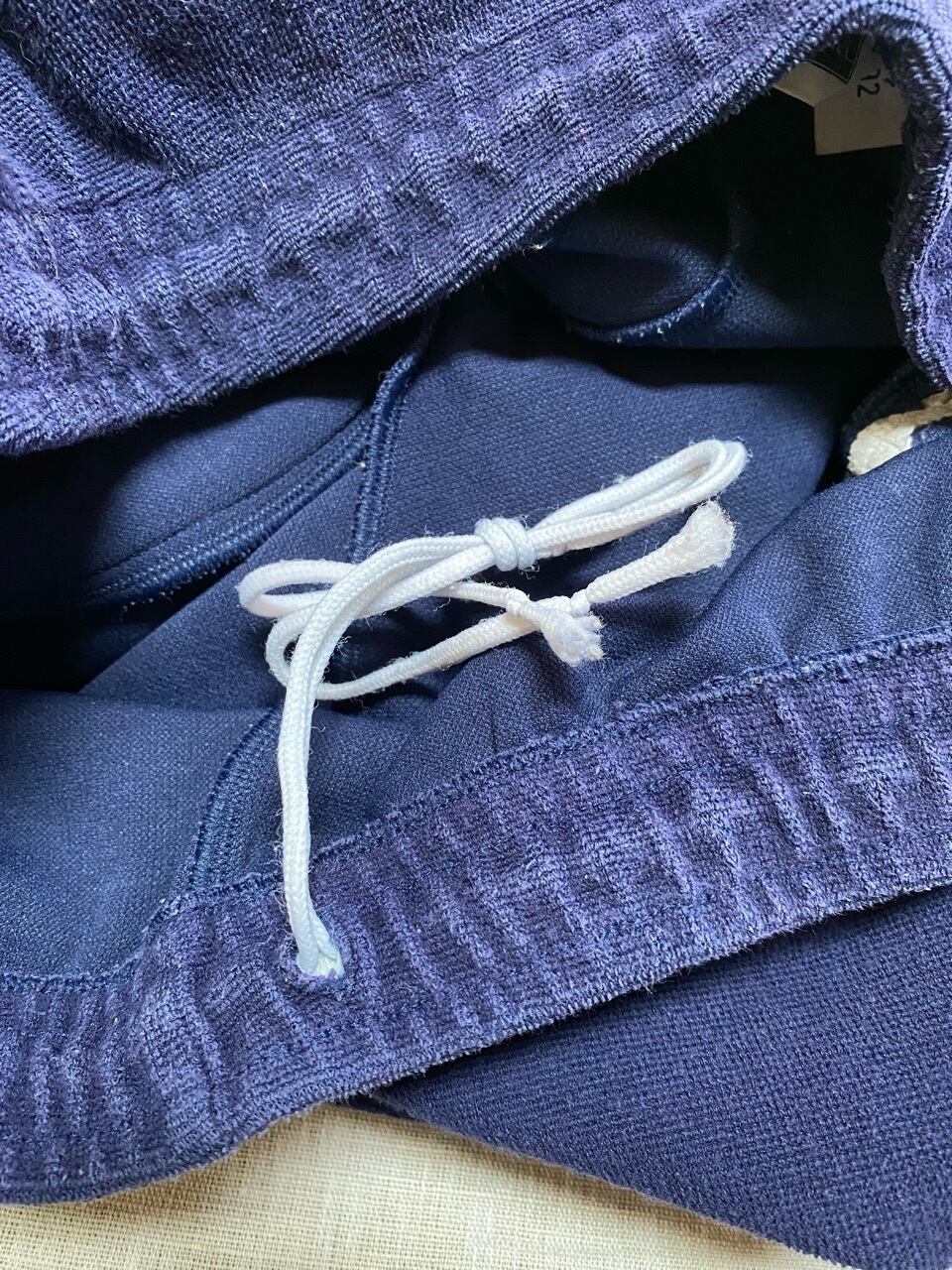 表記はないですが、ポリコットンのパイル風のサラッとした生地で伸縮性もあります。ウエストはゴムと紐で絞れ裾にはジップがありますが広げていただいてもいいと思います。