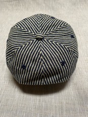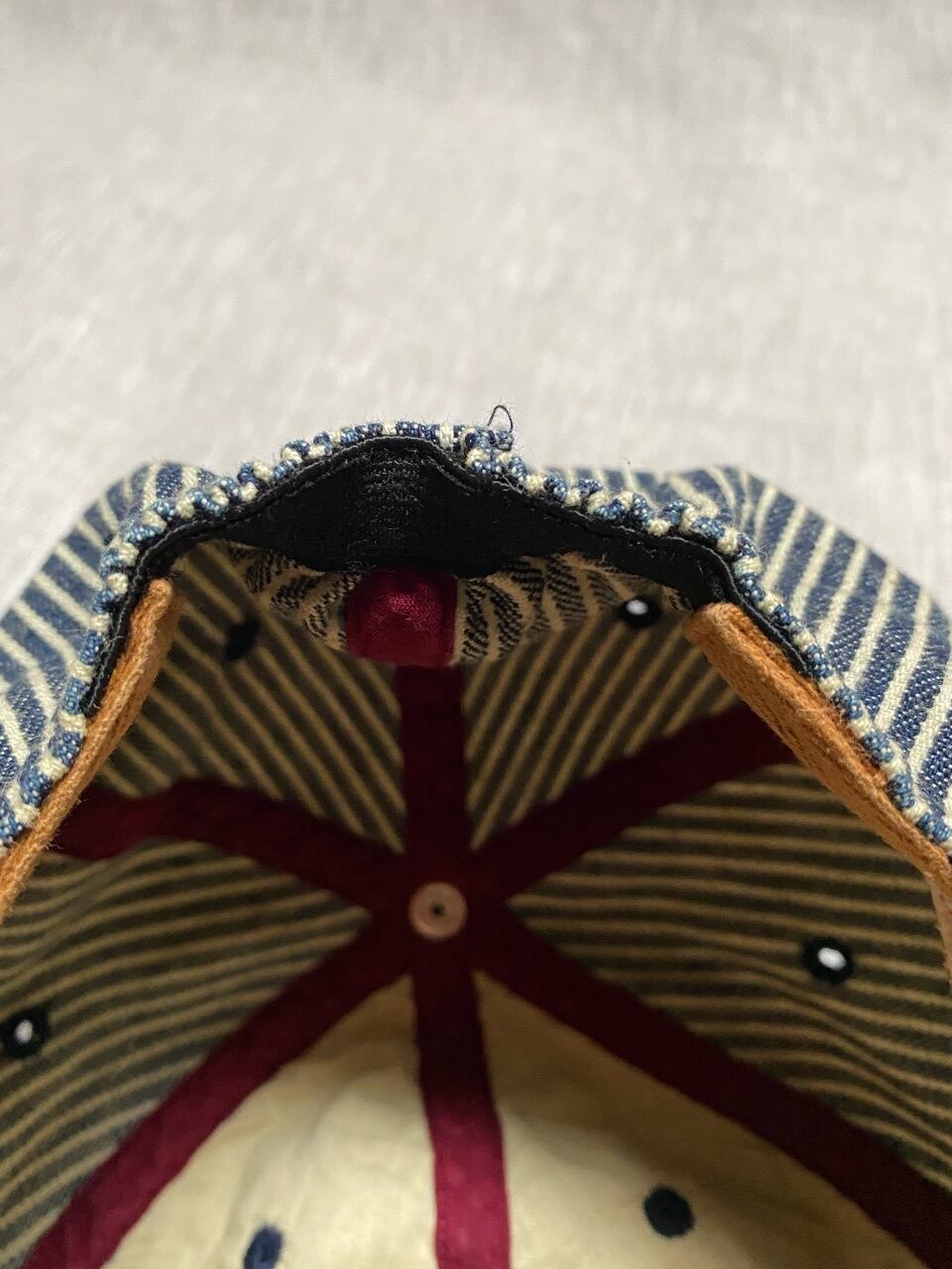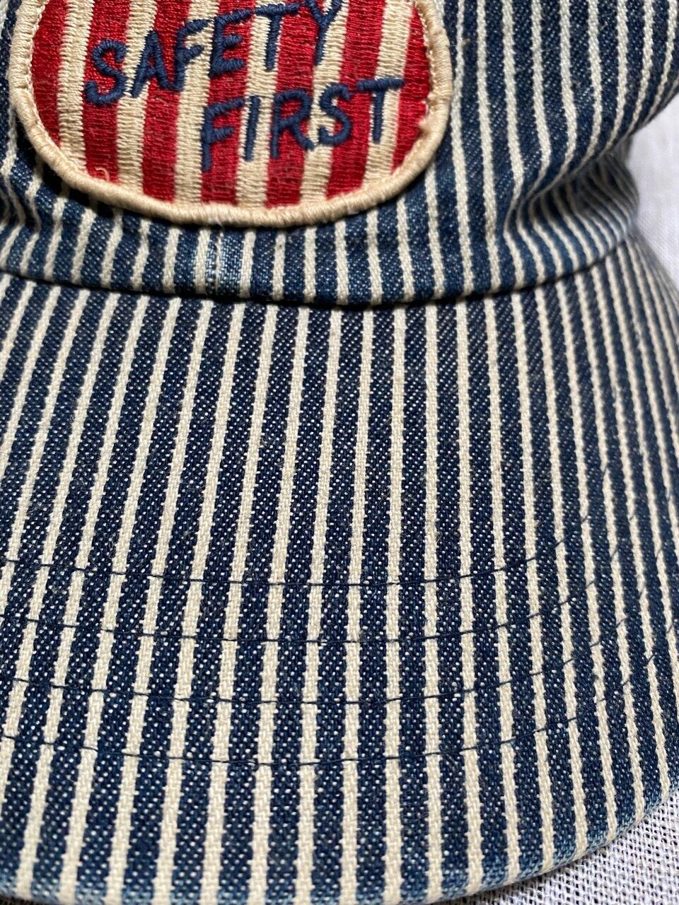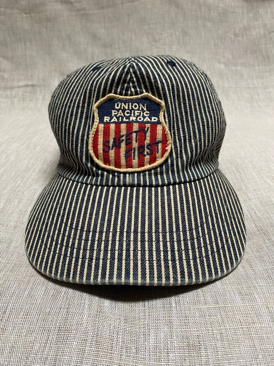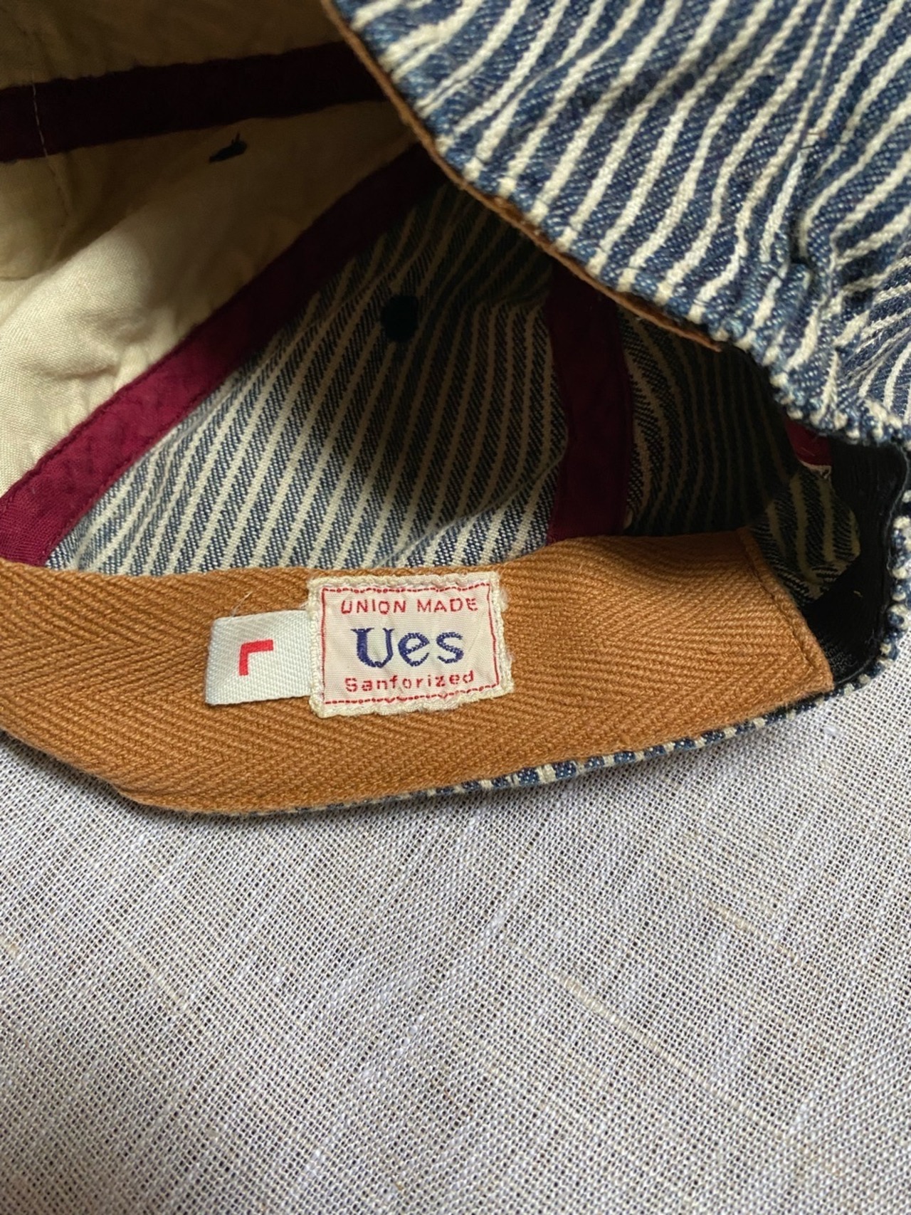 90年代のUESのベースボールキャップです。ヒッコリーストライプ生地を使用したキャップで元々ユーズド加工して販売されていたモノです。浅めで被りやすくカジュアルスタイルには合わせやすいキャップです。後はゴムでの調整になります。