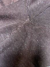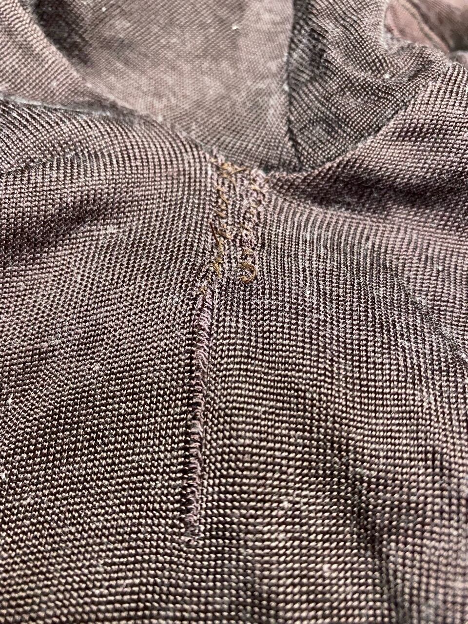 写真でお分かりのように全体的に古着独特な褪せた感じで、形も全体的によじれがあり右肩はかなりよれています。両脇に縫い直しがあります。写真をご確認ください。