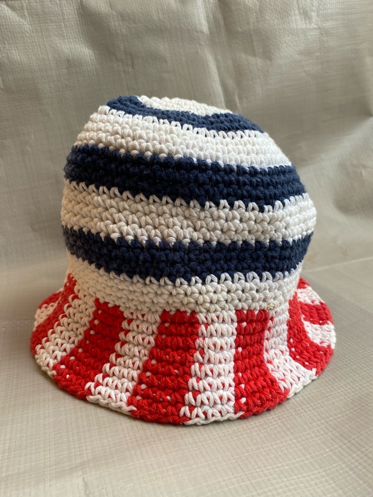 90年代のイタリアはミラノのLAZZARIのニットハットです。コットン素材でマリン的なストライプなので春夏にかわいく被っていただけます。