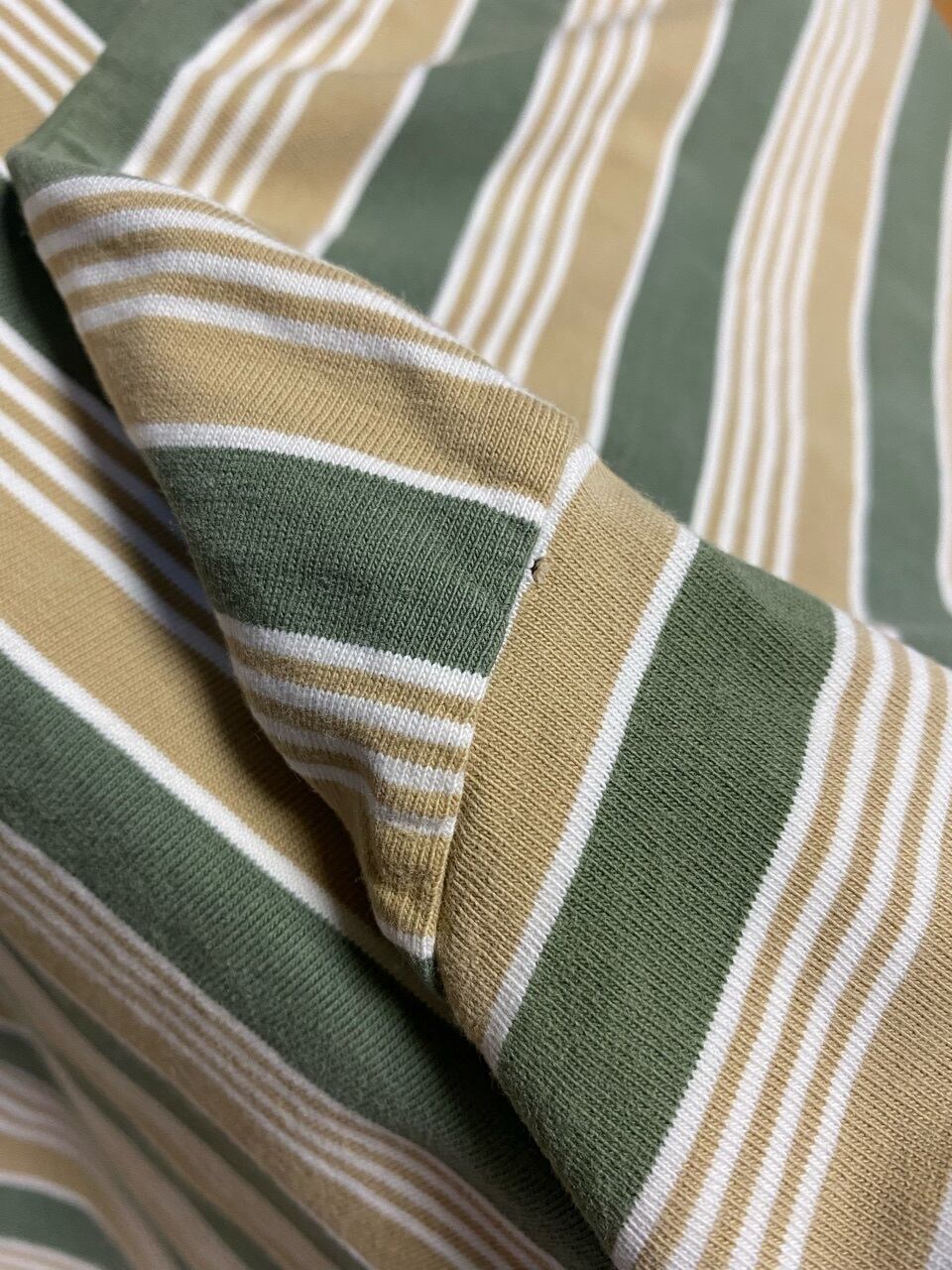 90年代のGAPマルチボーダーポケットTシャツです。当時日本に直営店は無くインポートとして輸入していた頃の商品です。綿素材の古着特有のよじれ感も出ています。90年代独特な雰囲気のあるボーダポケットTシャツです。是非!