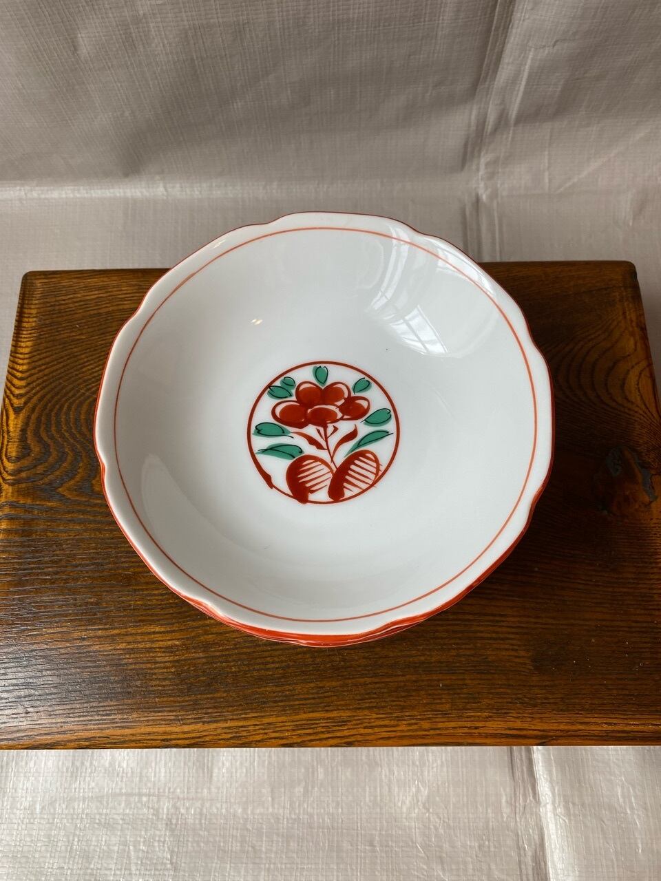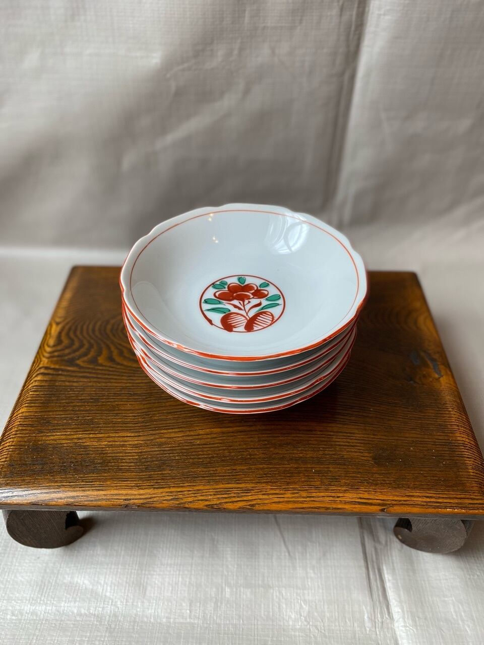 恐らく昭和の頃の未使用品です。花絵柄の使いやすい大きさの小鉢5枚セットです。