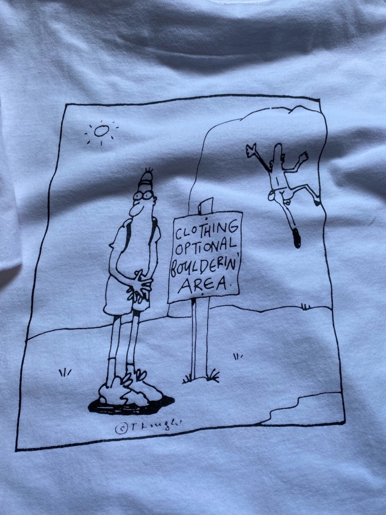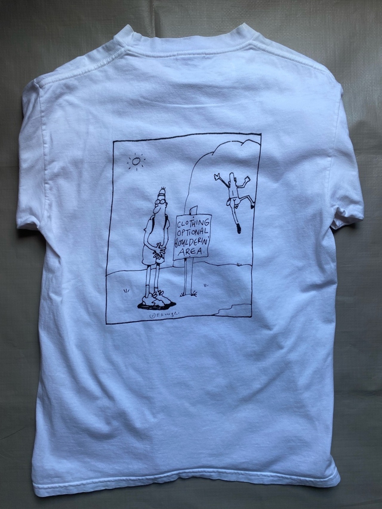 90年代のユタ州ソルトレイクシティの老舗アウトドアブランドPIKAのプリントTシャツ。クライミングしているポップな絵がとてもかわいいプリントです。90年代のモノで使用感や多少の日焼けなどありますが是非。