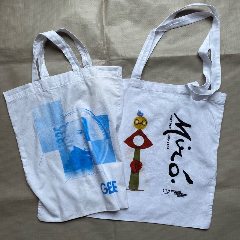 右はドイツのケルンにあるマックスエルンスト美術館で販売された芸術家ミロのエコバッグで、左はドイツの製薬会社マッケソンヨーロッパのGEHEのエコバッグのセットです。エコバッグはいくつあっても楽しく便利なアイテムです。