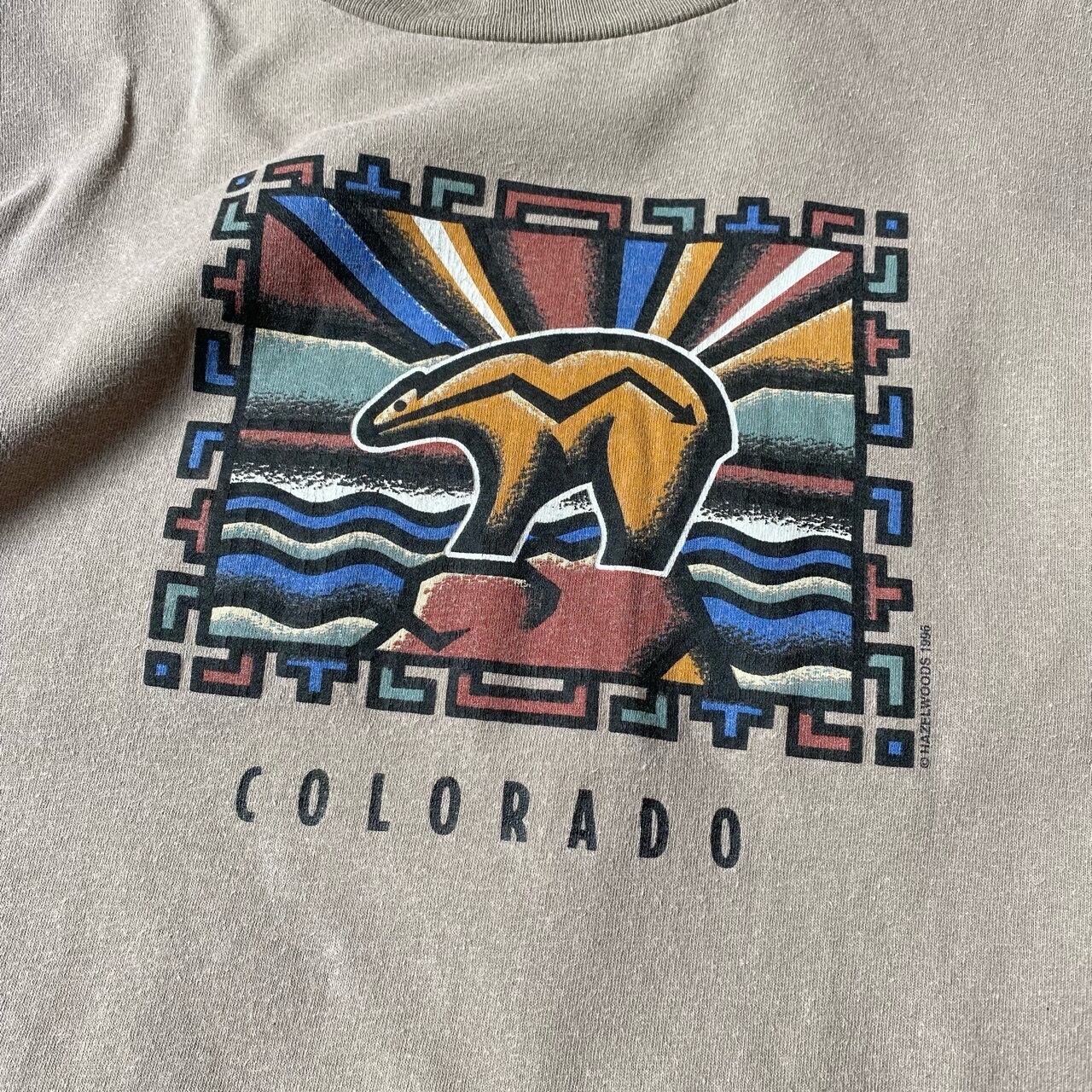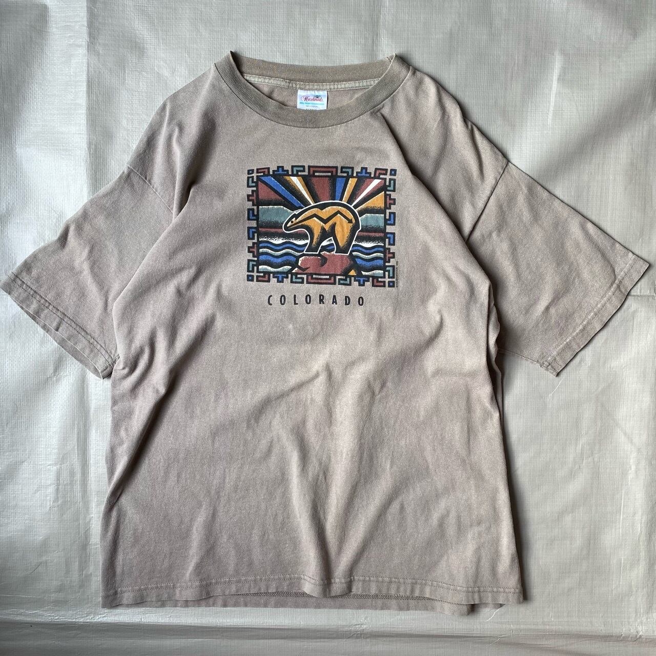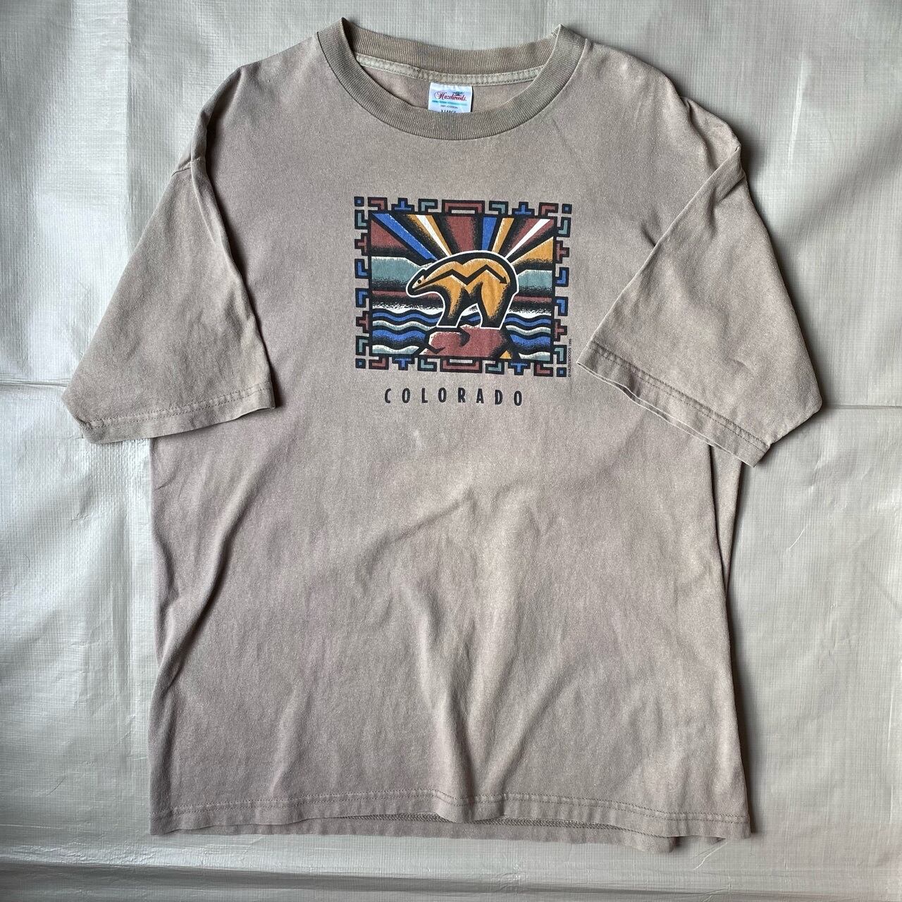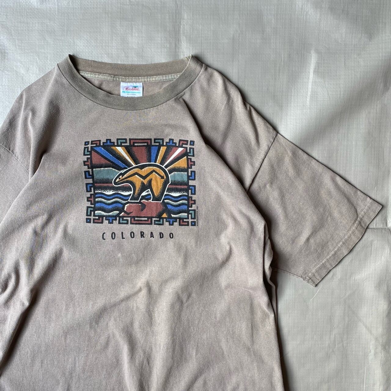 アメリカ、フェニックスのHAZELWOOD社の90年代のコロラドのスーベニアTシャツだと思います。ベージュボディに綺麗なプリントが少しネイティブな雰囲気です。