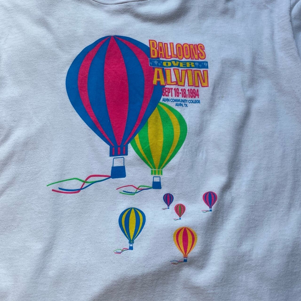 テキサス州にあるアルビンコミュニティカレッジの1994年開催のバルーン大会のTシャツ。カラフルなパルーンプリントがいい感じ。