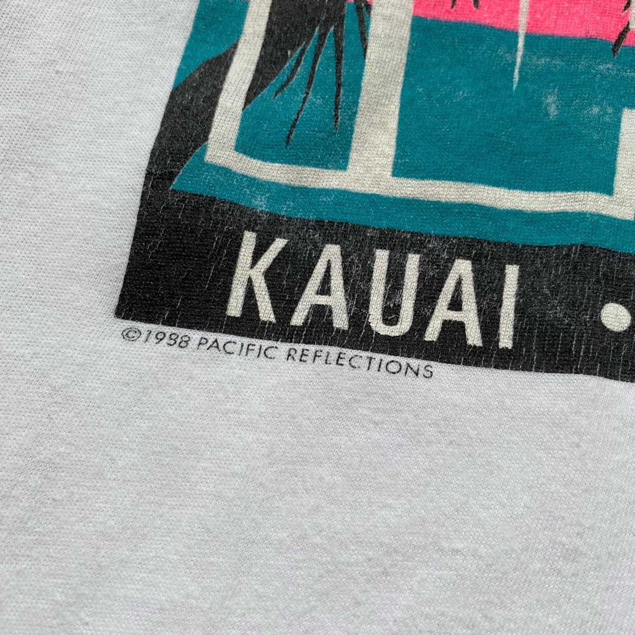 1988年のアート会社PACIFIC REFLECTIONSのデザインを使用したハワイのスーベニアTシャツです。プリントがとてもいい雰囲気でサイズ的にも女性の方にオススメです。