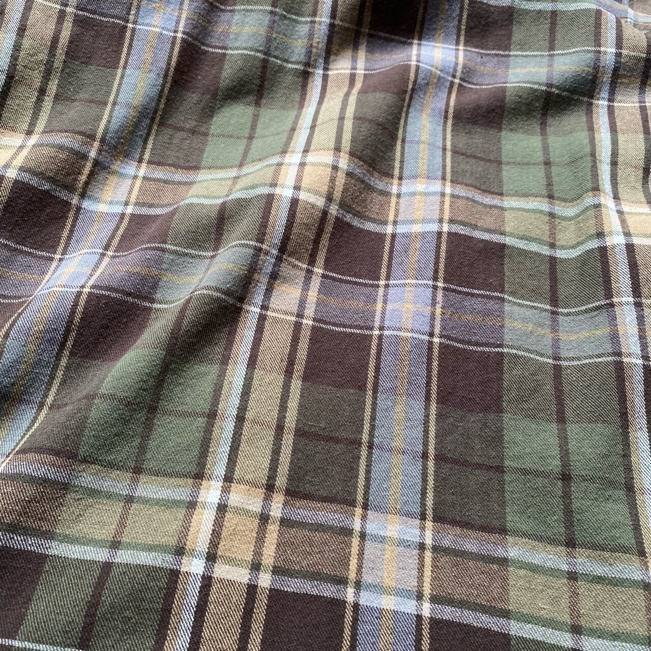 ティンバーランドのフランネルチェックシャツです。ティンバーランドらしい色ブラウンとカーキのチェックで左胸にはトレードマークの刺繍もあります。サイズ表記はMですが大きめです。