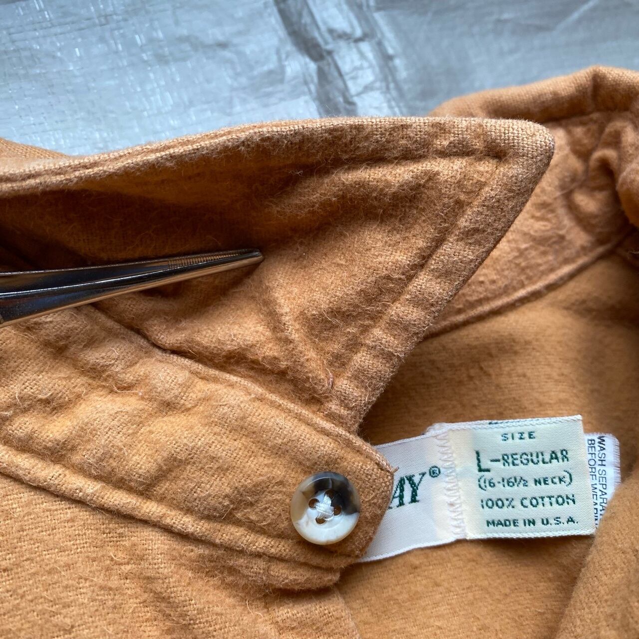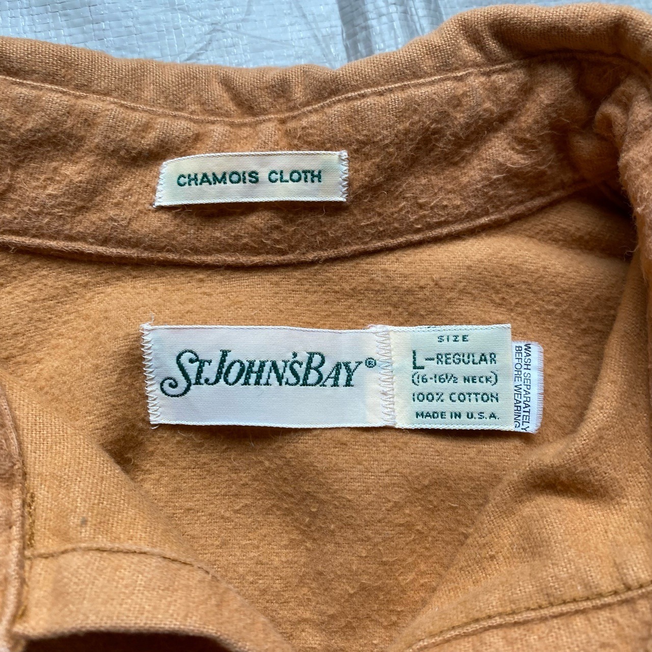 80年代のアメリカJ.Cペニーズのプライベートブランドのセントジョンズベイのフランネルワークシャツです。やや肉厚で柔らかなシャモアクロスを使用しています。襟に芯の入ったタイプです。
