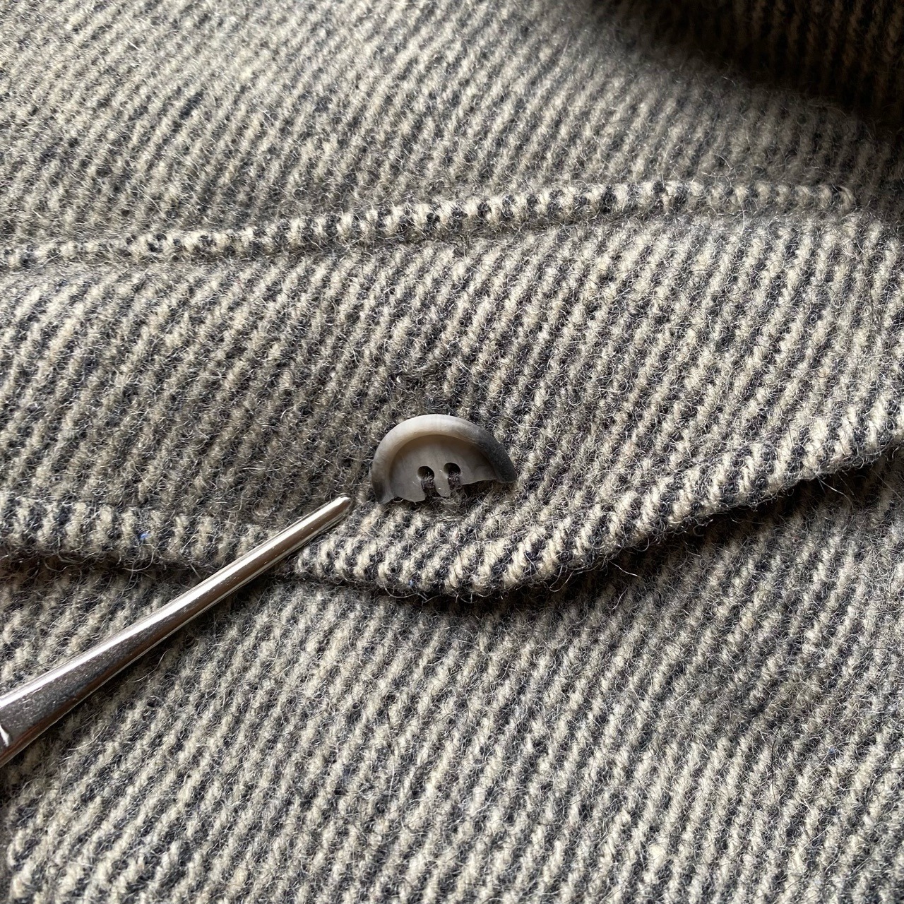 多少の使用感があります。写真にありますが、左胸ポケットのハボタンが割れています。裾の前面と横、左カフスに汚れがあります。ご確認ください。